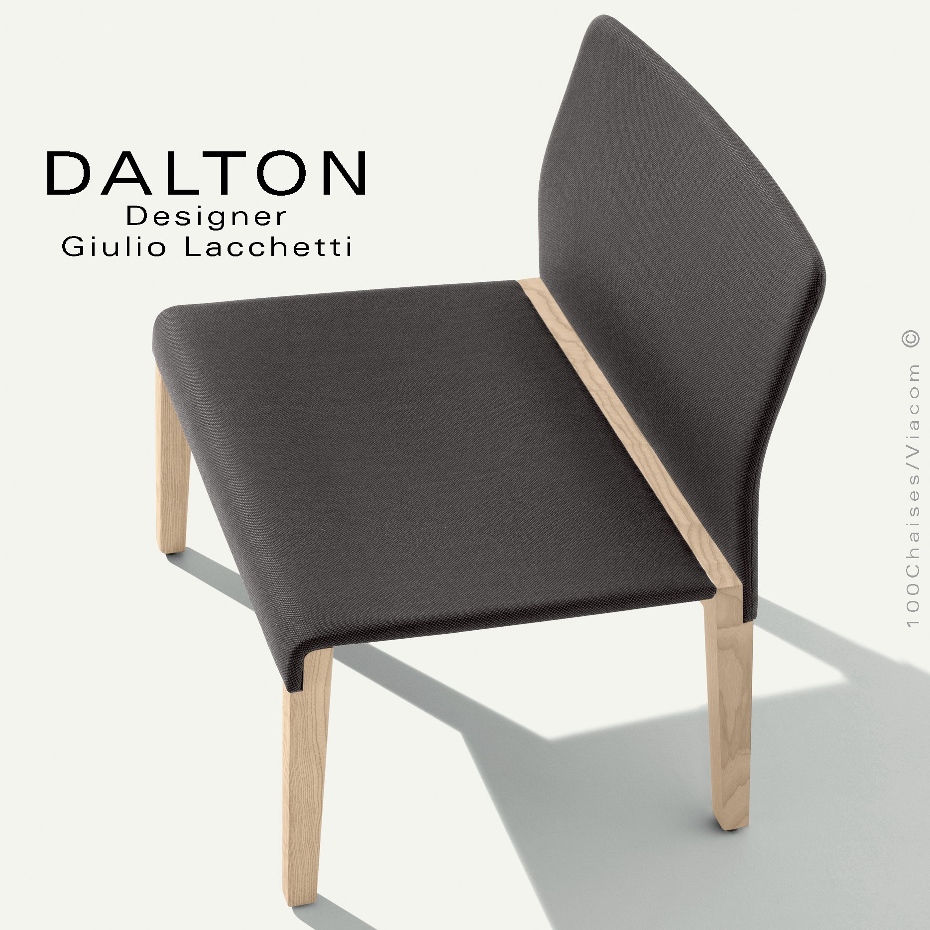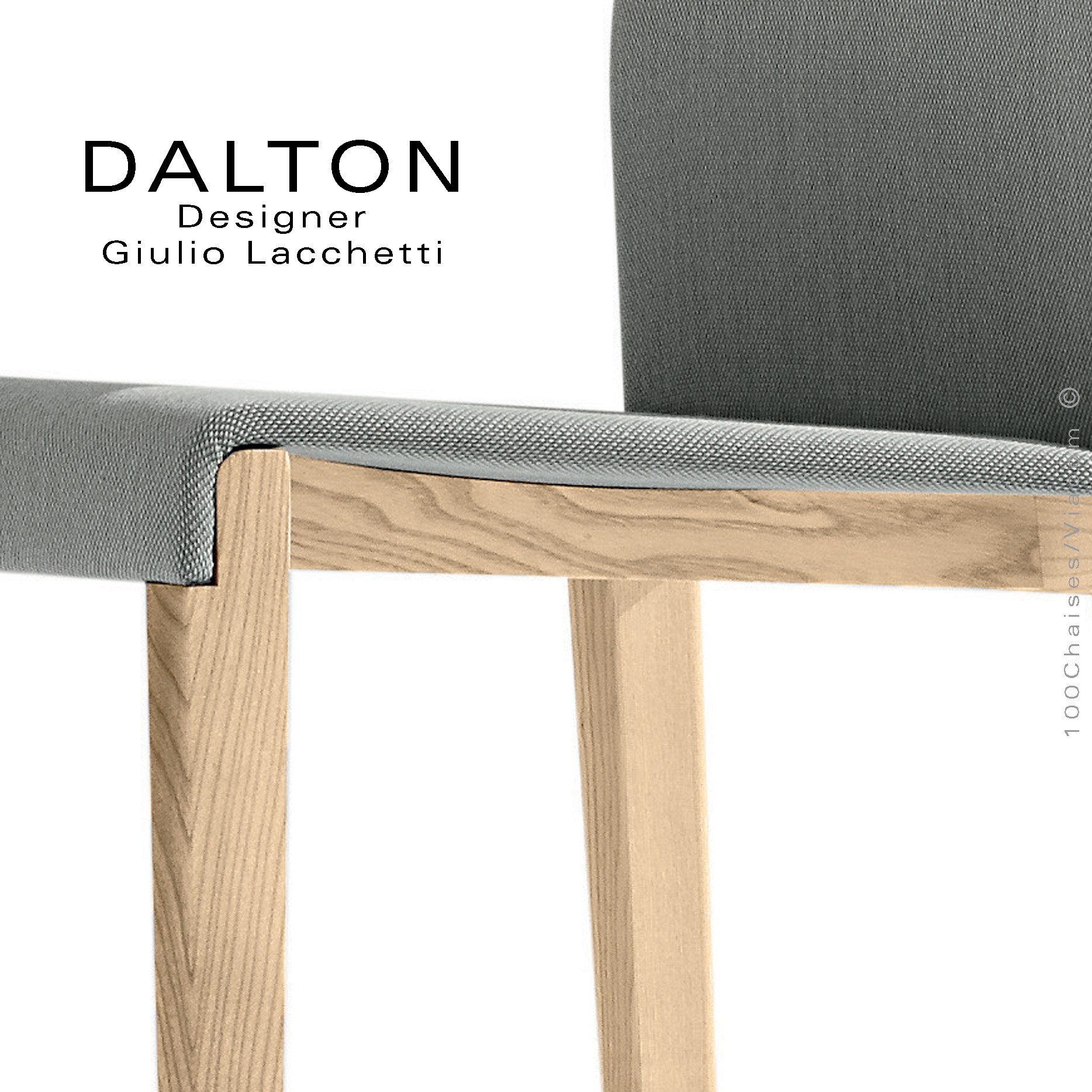 Normes européennesTabouret de bar design DALTON, assise et demi-dossier en multiplis de bois de Hêtre. Assise et dossier garnis de mousse polyuréthane avec habillage tissu tissé du fabricant Gabriel, gamme Medley, composition 100% PL., ignifugé - BS EN 1021 1&2 Cigarette and Match. Couleur voir palette tissu au choix. Piétement bois massif de Frêne légèrement conique de section carré, avec repose-pieds inox, finition teinté au choix (voir palette vernis fabricant). Avec tampons plastiques de protection des sols. Autre tissu tissé, feutre, velours ou aspect cuir synthétique. Convient uniquement pour l'intérieur. Vos demandes à commandes@100chaises.fr