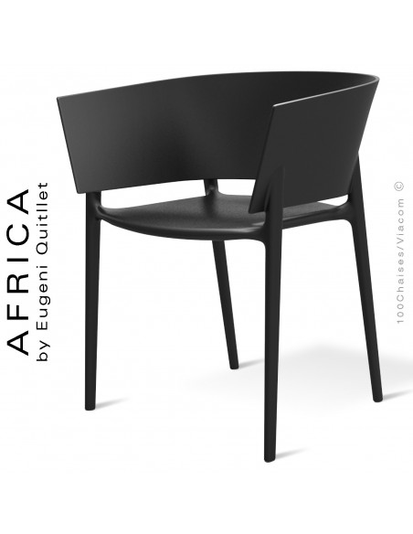 Fauteuil d'extérieur ou terrasse AFRICA, structure et assise coque plastique noir - Lot de 4 pièces.