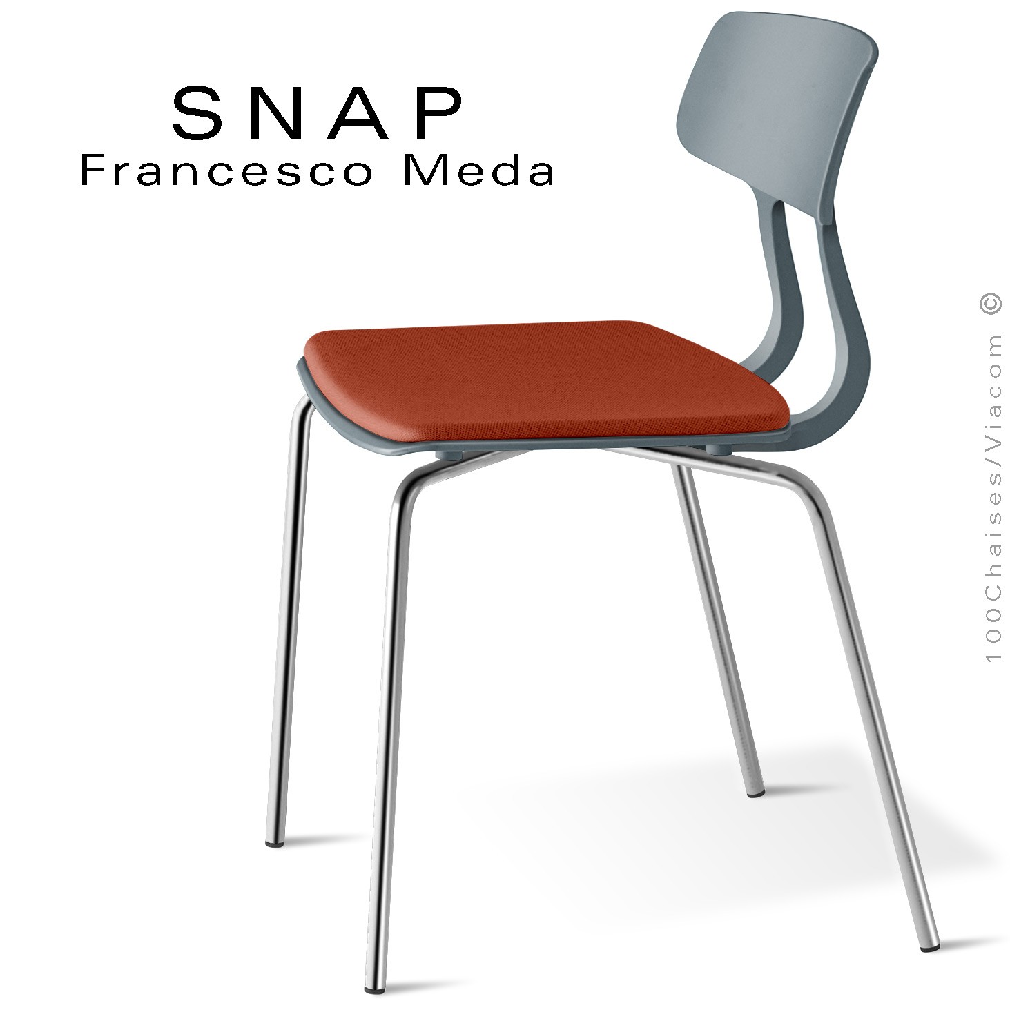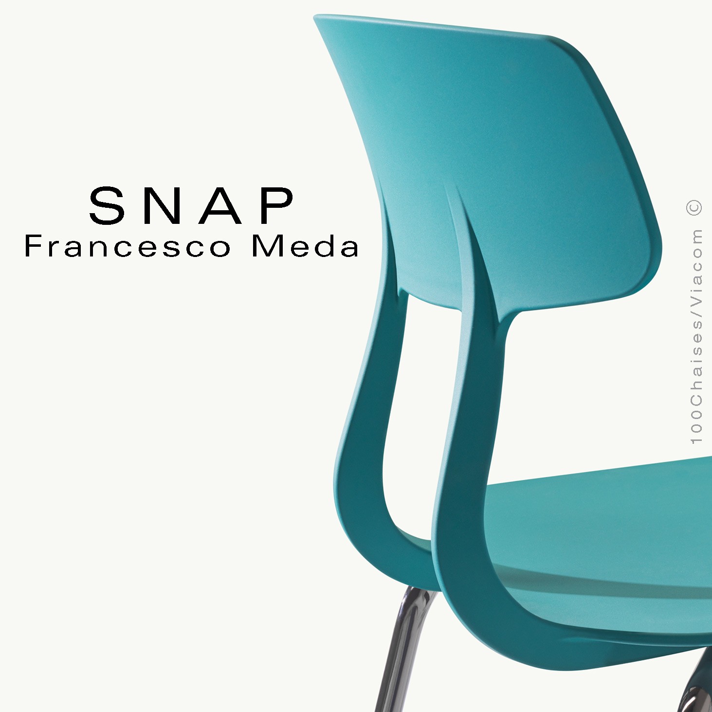 Snap est un modèle constitué d’un mariage de propylène et de tubes métalliques dont la famille est composée d’une chaise, d'un fauteuil, et d'un tabouret qui, ensemble, représentent l'essence même du siège dans sa simplicité et sa fonctionnalité exemplaires. Le siège a une coque atypique, composée d'une assise et d'un dossier en plastique réunis par deux bras de forme ogivale. Il en résulte un mouvement qui rend le siège structurellement et esthétiquement flexible et léger. Snap peut être personnalisé dans une large gamme de couleurs fortes et contemporaines, parfaites pour les projets raffinés et dynamiques, en intérieur comme en extérieur, ainsi que pour la grande collectivité, comme les salles de réunion, les cafés et les lieux de restauration d'entreprise.