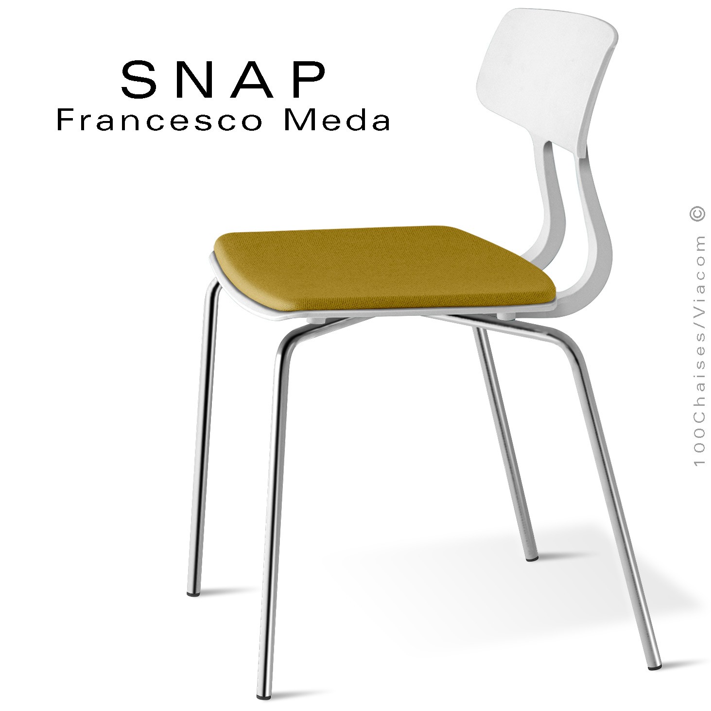 SNAP est un modèle constitué d’un mariage de propylène et de tubes métalliques dont la famille est composée d’une chaise, d'un fauteuil, et d'un tabouret qui, ensemble, représentent l'essence même du siège dans sa simplicité et sa fonctionnalité exemplaires. Le siège a une coque atypique, composée d'une assise et d'un dossier en plastique réunis par deux bras de forme ogivale. Il en résulte un mouvement qui rend le siège structurellement et esthétiquement flexible et léger. Snap peut être personnalisé dans une large gamme de couleurs fortes et contemporaines, parfaites pour les projets raffinés et dynamiques, en intérieur comme en extérieur, ainsi que pour la grande collectivité, comme les salles de réunion, les cafés et les lieux de restauration d'entreprise.