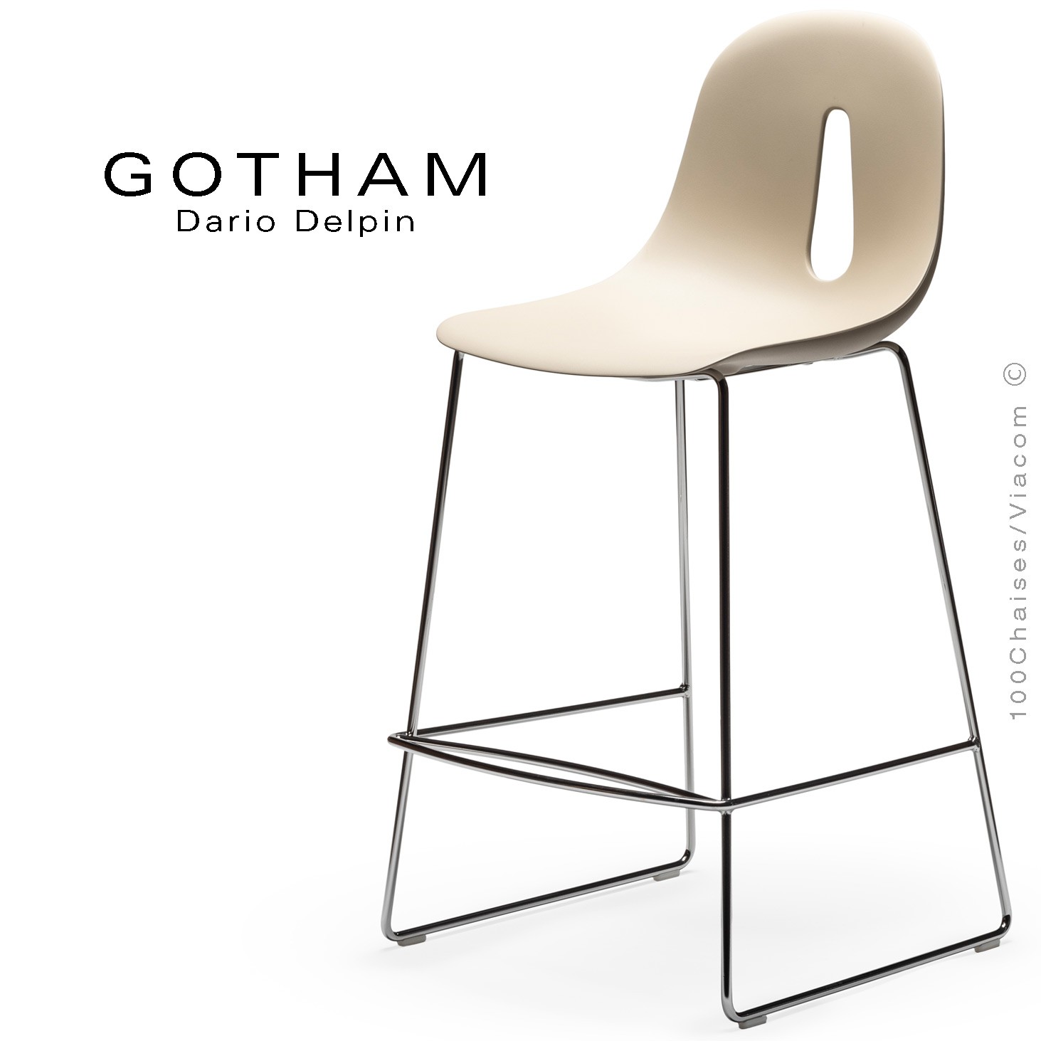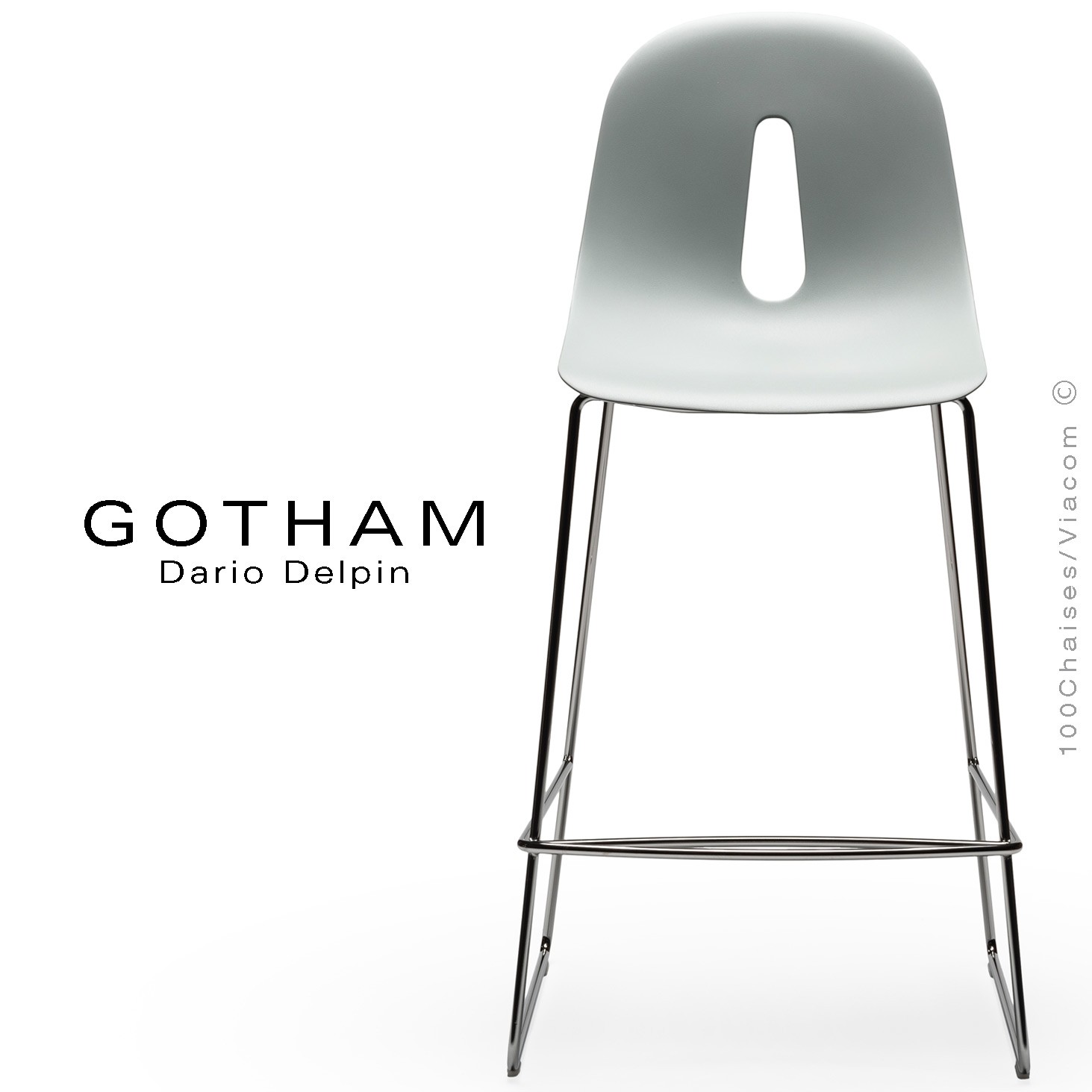Normes européennesTabouret de cuisine design GOTHAM-SL-SG-65, pour les hôtels, cafés, restaurants ou milieu domestique cuisine, chambre, bureau. Assise coque plastique en polyuréthane rigide, monobloc à l'épreuve du feu, couleur teinté dans la masse (13 couleurs possibles). Structure et piétement type luge en rond d'acier Ø12 mm., avec repose pieds et tampons plastique de protections des sols. Vos demandes à : commandes@100chaises.fr