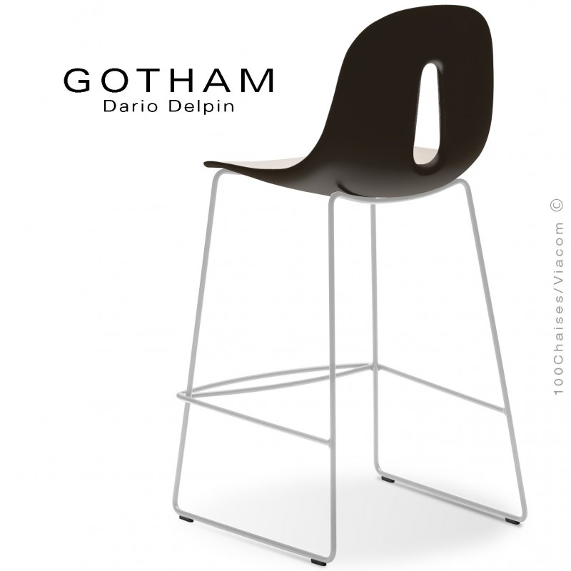 Tabouret de cuisine GOTHAM-SL-SG-65, structure luge acier blanc , assise plastique crème+café