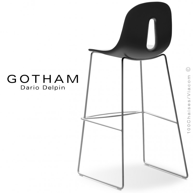 Tabouret de bar design GOTHAM-SL-SG-80, pour les hôtels, cafés, restaurants ou milieu domestique la maison, cuisine, bureau, chambre. Assise coque plastique en polyuréthane rigide à l'épreuve du feu, monobloc, couleur teinté dans la masse (13 couleurs possibles). Piétement type luge en rond d'acier Ø12 mm., avec repose pieds et tampons plastiques de protections des sols. Vos demandes à : commandes@100chaises.fr