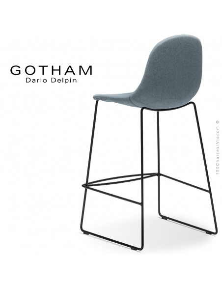Tabouret de cuisine design GOTHAM-SLI-SG-65, structure luge acier peint noir, assise garnie tissu 7001