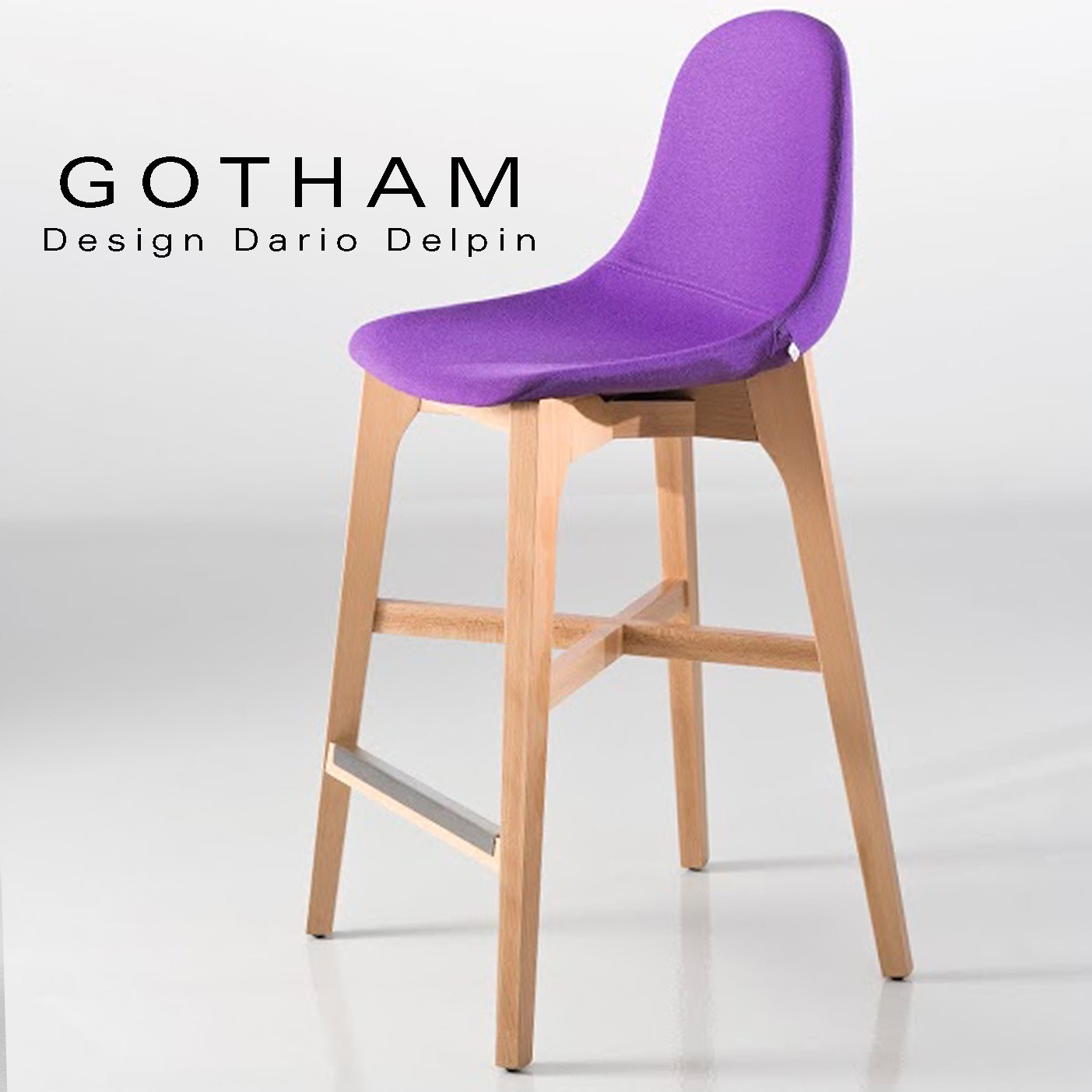 Normes européennesTabouret de cuisine design GOTHAM-W-SG-65, pour les hôtels, cafés, restaurants ou milieu domestique la maison cuisine en intérieur. Assise coque plastique en polyuréthane rigide, monobloc à l'épreuve du feu, teinté dans la masse (13 couleurs possibles). Structure et piétement 4 pieds en bois de hêtre massif, légèrement conique, avec repose pieds inox et tampons plastique de protections des sols. Vos demandes à : commandes@100chaises.fr