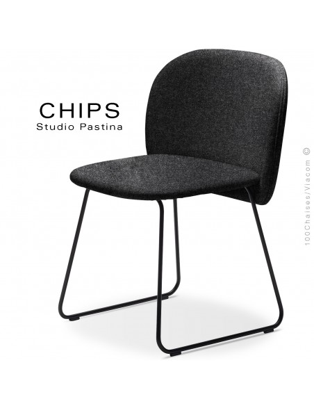 Chaise design CHIPS-SL, piétement luge acier peint noir, assise et dossier habillage tissu 200noirfoncé.