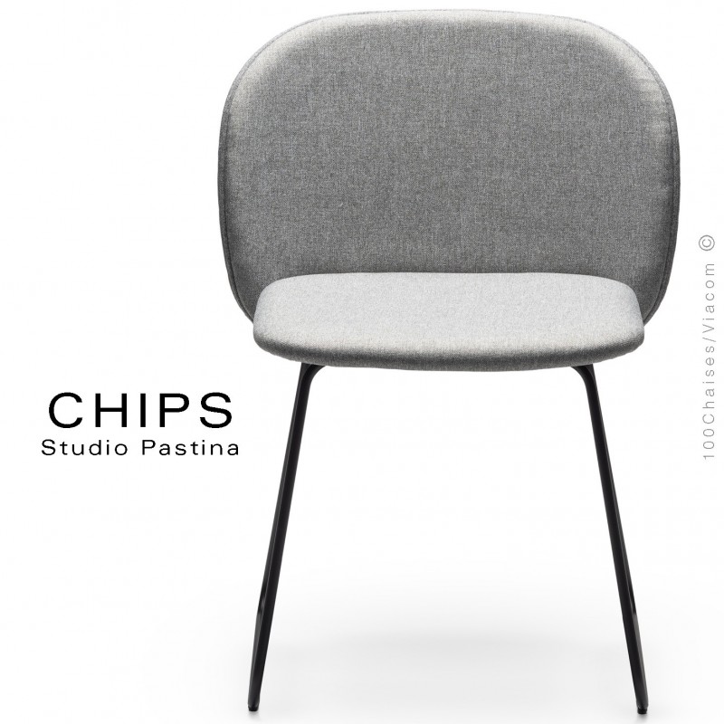 Chaise design CHIPS-SL, piétement luge acier peint noir, assise et dossier habillage tissu 201noirclair.