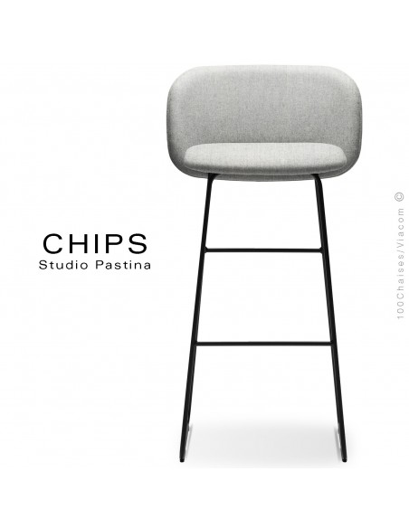 Tabouret de bar design CHIPS-SL-SG-80, piétement luge acier peint noir, assise et dossier habillage tissu 101crème.