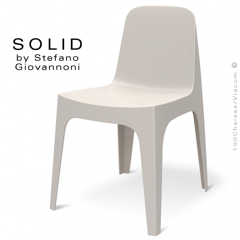 Chaise design SOLID, pour terrasse et jardin CHR, mais aussi pour la maison. Structure 4 pieds et assise plastique en polypropylène par injection et renforcé de fibre de verre, monobloc. Couleurs teintés dans la masse. Option coussin d'assise tissu gamme DRALON (lors de votre commande merci de préciser la couleur souhaitée). Empilable par 8 unités. Apte pour une utilisation intérieure et extérieure. Coussin d'assise autre gamme tissu possible : NAUTIC - SILVERTEX - CREVIN - SAVANE - HERITAGE, voir palettes images (sur demande à commandes@100chaises.fr) - Lot de 4 pièces.