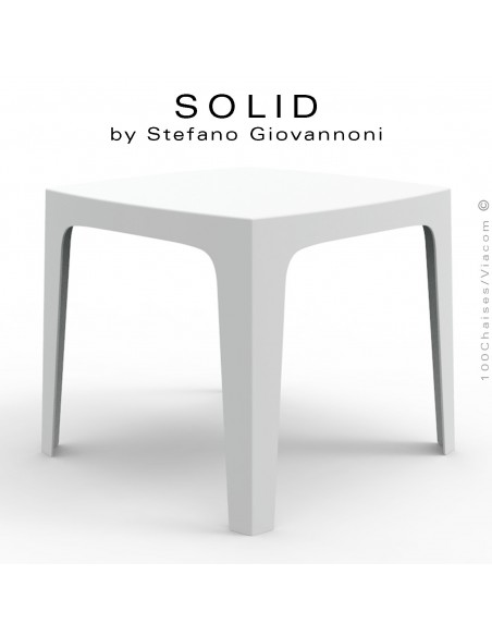 Table SOLID, pour repas ou dîner en extérieur, stucture et piétement 4 pieds en plastique couleur blanche.
