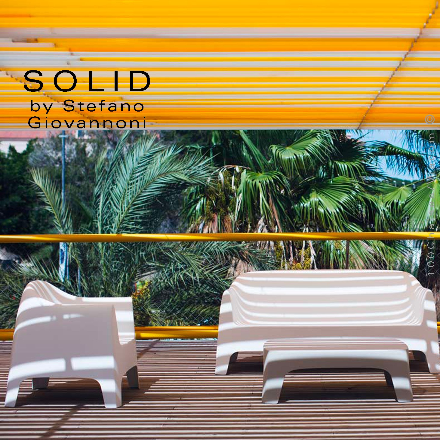 La collection SOLID est un groupe d’items qui, tout en étant léger, permettent stabilité grâce à sa définition géométrique, comme s’ils étaient sculptés en pierre. La collection comporte un canapé, un fauteuil, une chaise, une table, un fauteuil lounge et une petite table. Une collection fonctionnelle grâce à son design.