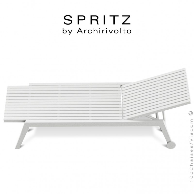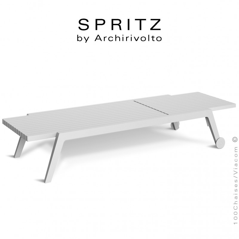 Bain de soleil ou chaise longue design SPRITZ, pour terrasse, SPA, pool house, piscine, bord de mer. Structure plastique, polypropylène, renforcé de fibre de verre + roulettes. Avec tampons de protection des sols. Mobilier teinté dans la masse. Option coussin d'assise gamme DRALON (lors de votre commande merci de préciser la couleur souhaitée). Empilable par 12 pièces - Lot de 4 pièces.