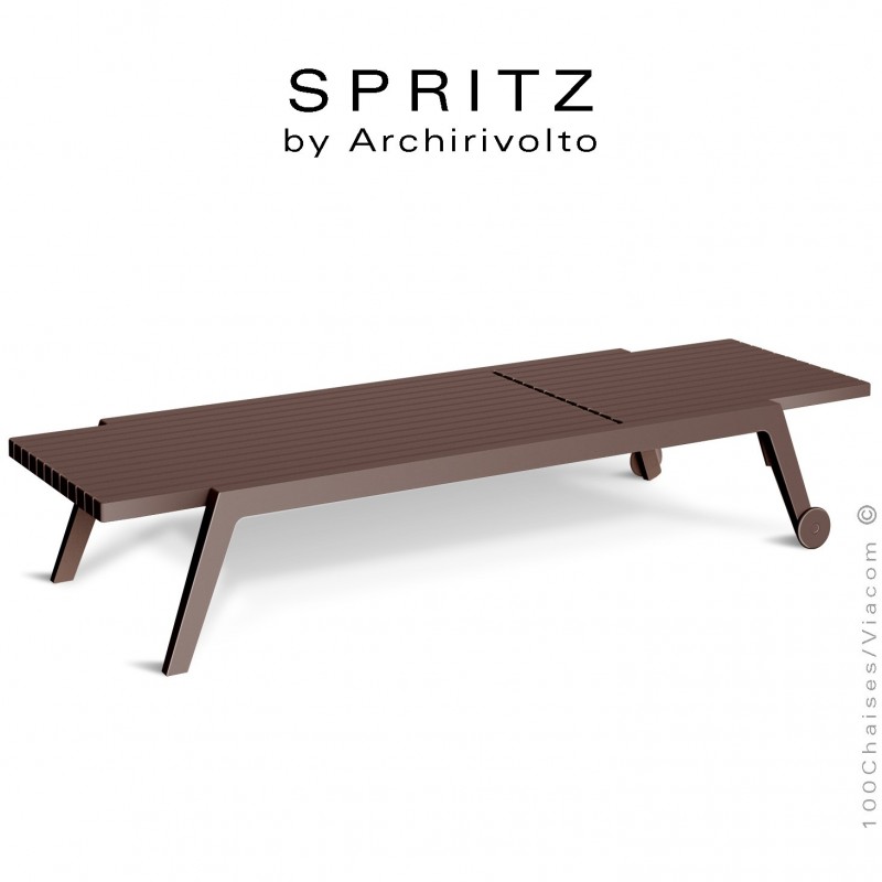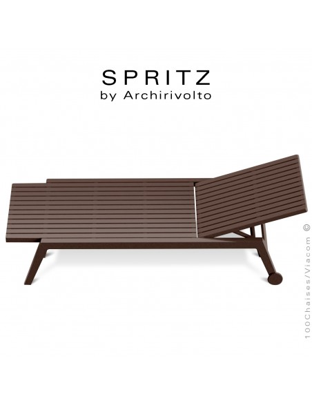 Bain de soleil ou chaise longue design SPRITZ, pour terrasse, SPA, pool house, piscine, bord de mer. Structure plastique, polypropylène, renforcé de fibre de verre + roulettes. Avec tampons de protection des sols. Mobilier teinté dans la masse. Option coussin d'assise gamme DRALON (lors de votre commande merci de préciser la couleur souhaitée). Empilable par 12 pièces - Lot de 4 pièces.