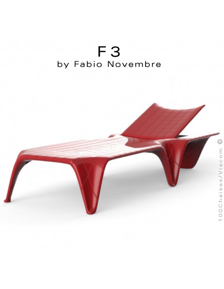 Bain de soleil ou chaise longue design F3, structure et assise résine couleur rouge d'aspect brillant.