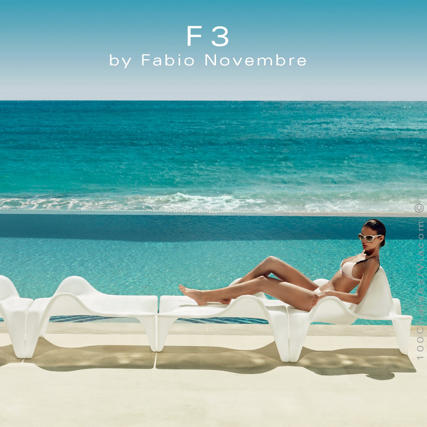 Bain de soleil ou chaise longue F3, structure et assise résine couleur ICE d'aspect mat.