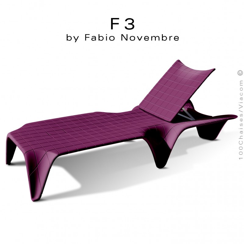Bain de soleil ou chaise longue F3, structure et assise résine couleur prune d'aspect mat.