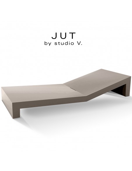 Bain de soleil ou chaise longue design JUT, structure et assise plastique et résine, couleur d'aspect mat taupe.