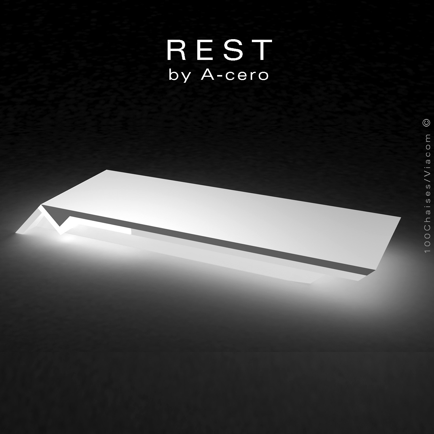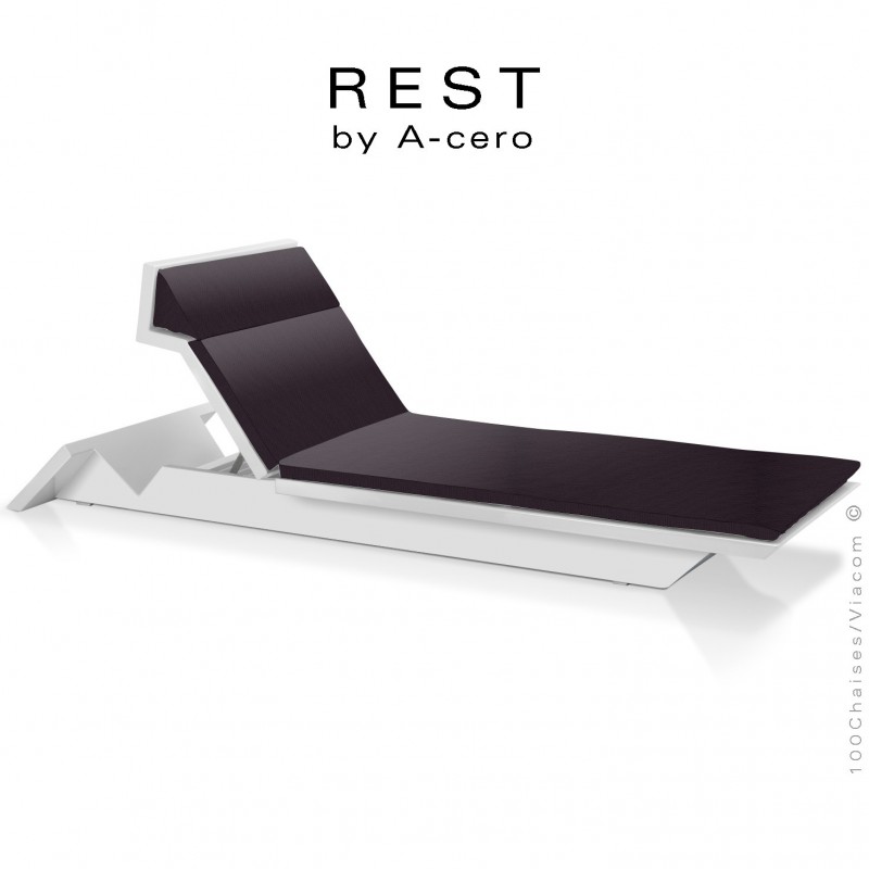 Bain de soleil ou chaise longue REST, structure et assise plastique couleur blanc d'aspect mat, avec coussin anthracite.