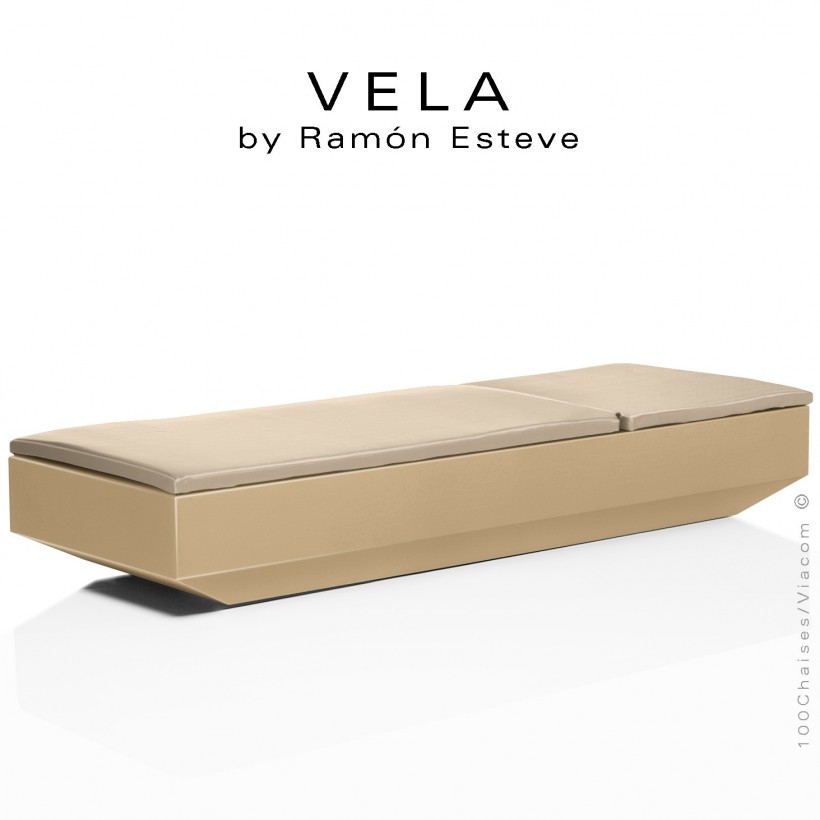 Bain de soleil ou chaise longue VELA, structure et assise plastique aspect mat, avec coussin.