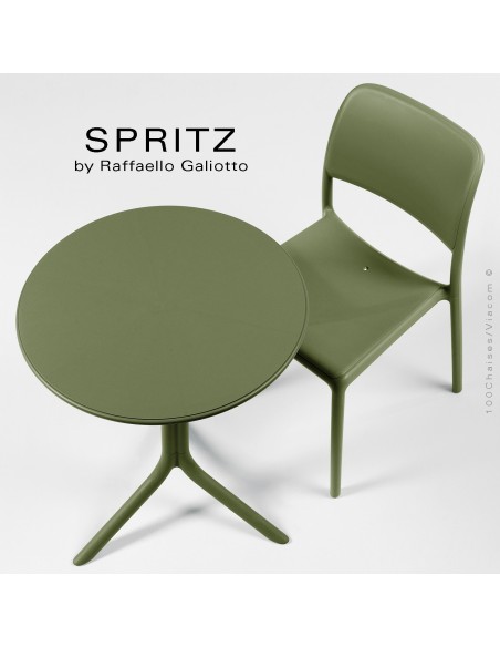 Collection table SPRITZ, plateau rond plastique plein, piétement colonne centrale plastique.