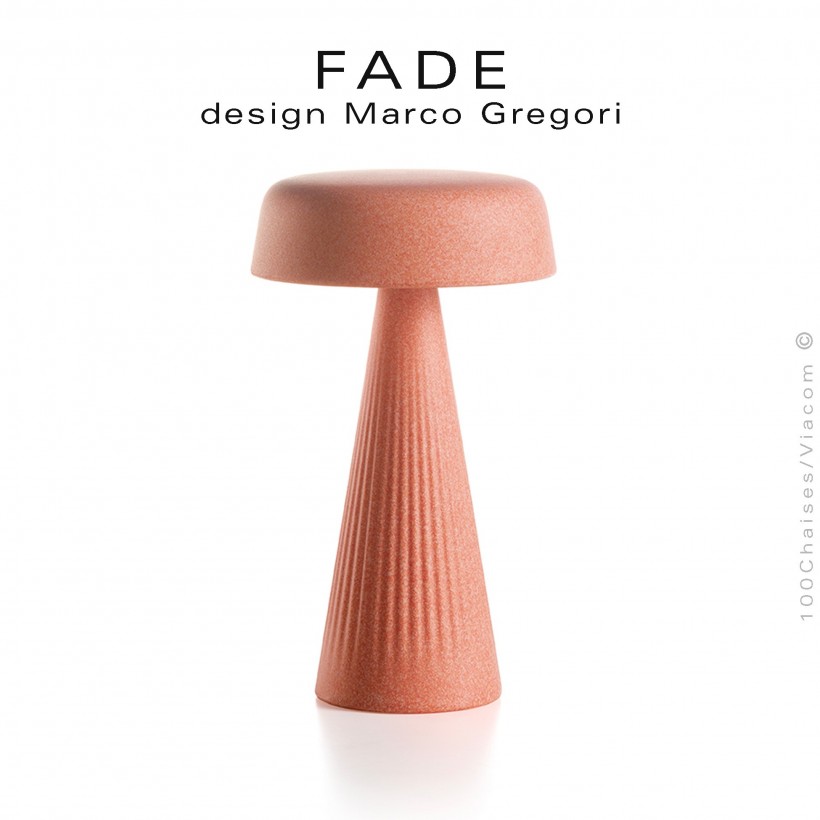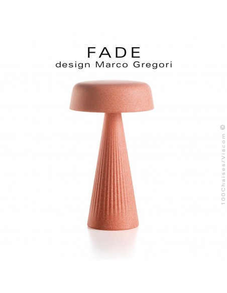 Lampe de table FADE, structure plastique nervurée couleur corail, éclairage d'ambiance par LED.