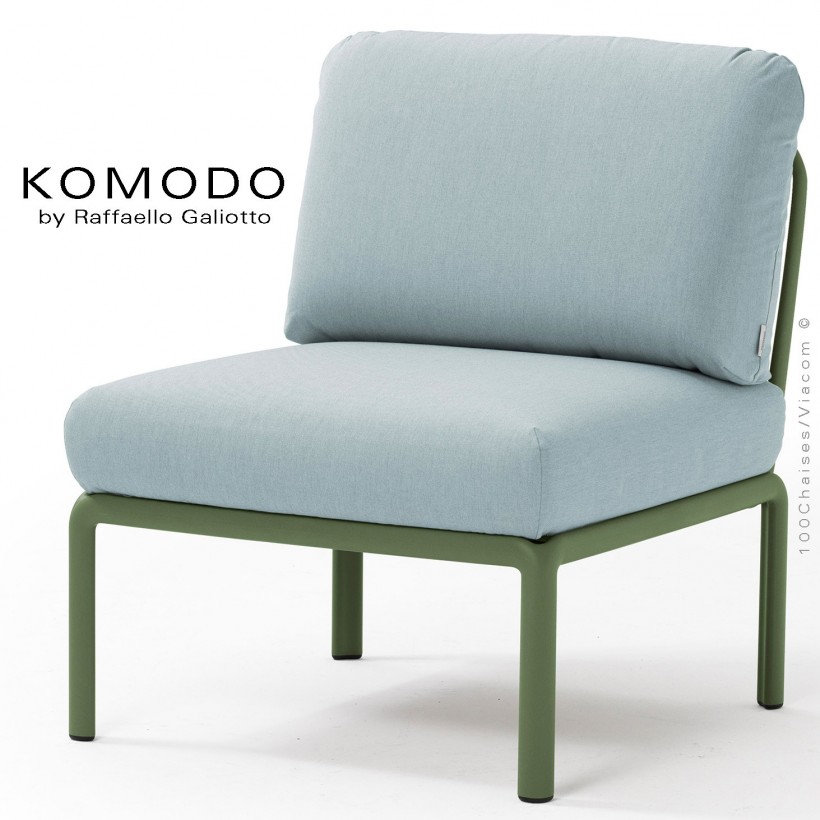 Élément central KOMODO, structure plastique vert, avec coussin tissu bleu clair.