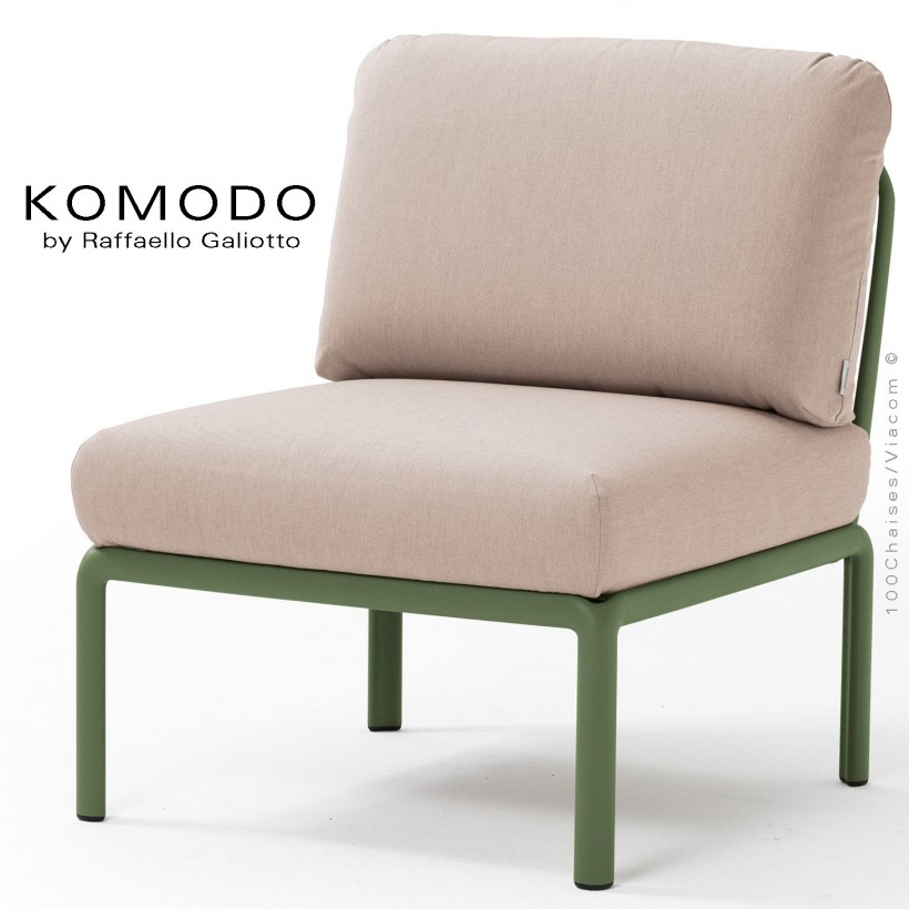Élément central KOMODO, structure plastique vert, avec coussin tissu crème.