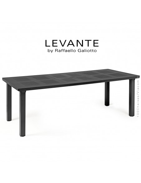 - LEVANTE : Plateau en plastique extensible de 160 à 220 x 100 cm., 4 pieds carré en aluminium peint.