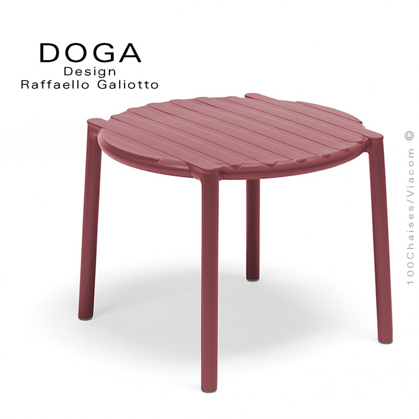 Table basse design DOGA, structure plastique couleur rouge Marsala.