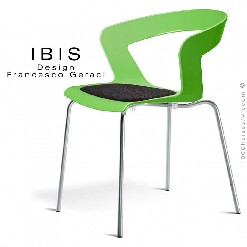 Chaise design IBIS assise coque couleur avec coussin feutre, piétement 4 pieds acier peint ou chromé brillant - Lot de 4 pièces.