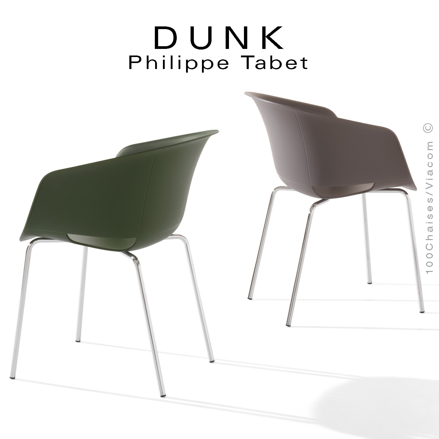 DUNK est une collection conçu par le jeune designer Philippe Tabet. Cette collection de fauteuil, bien que réalisé en polypropylène, s'inspire des sièges rembourrés : dans la rencontre hypothétique entre deux coutures, il y a une invitation au trou. La coque en polypropylène est disponible en deux versions, avec et sans trous : l'une rend le fauteuil empilable et plus fonctionnel ; l'autre non empilable, plus élégante. Les deux versions sont obtenues par un seul moule. L'optimisation du moule n'est qu'un des atouts de DUNK : le fauteuil DUNK est disponible en polypropylène 100% recyclable ou en polypropylène r-PP (PP recyclé) avec une composition variant entre 65 et 85%, provenant de la récupération de matériaux post-consommation. DUNK offre un choix entre élégance et fonctionnalité. Grâce à sa polyvalence, il peut être utilisé dans une large gamme d'applications.