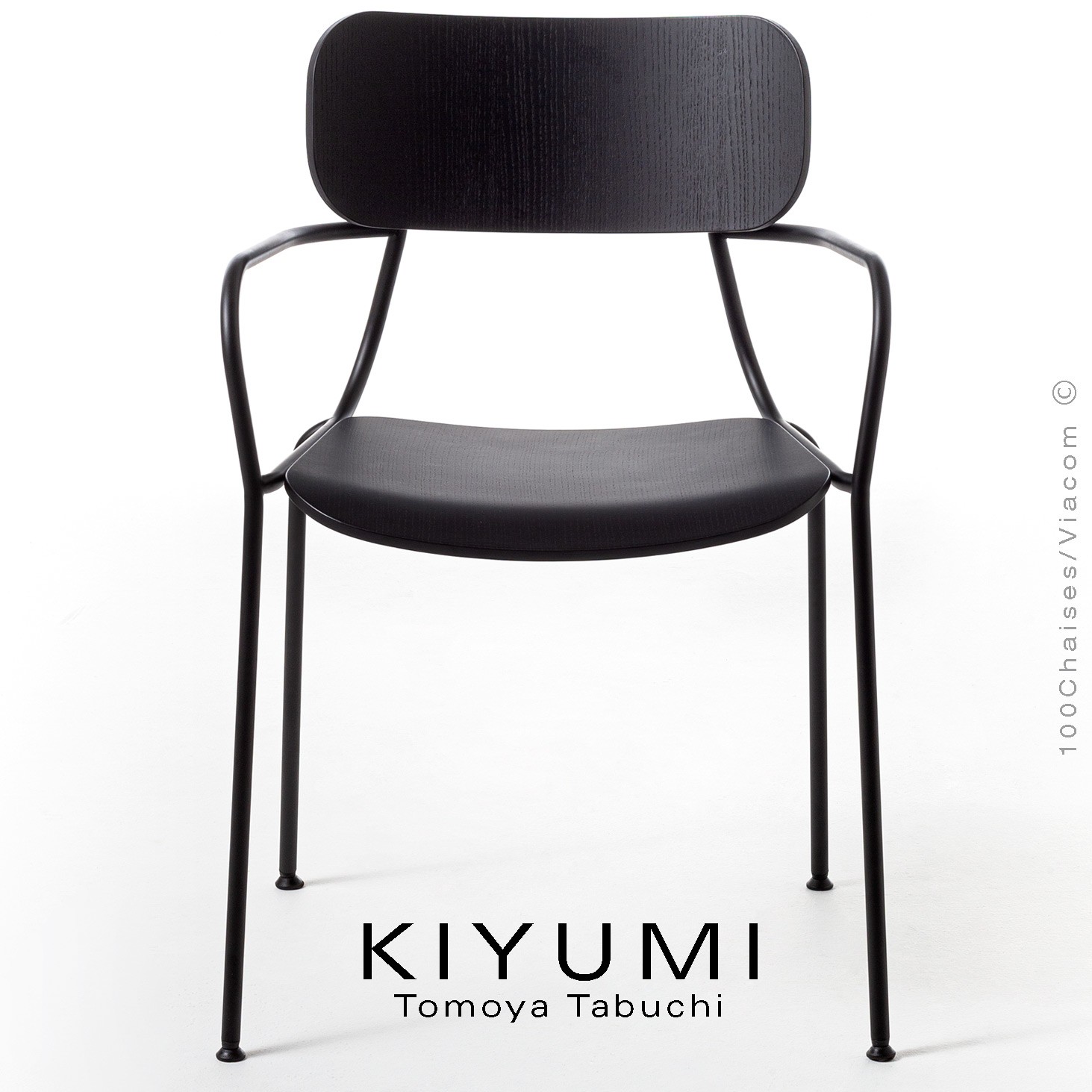 Le design linéaire et essentiel de la collection Kiyumi est le résultat d'une grande complexité de conception. Sur la structure sinueuse en tube d'acier sont greffés l'assise et un dossier incurvé, en placage de frêne multicouche ou tapissé de tissu ou de cuir. Même dans la version rembourrée, le cadre, élément esthétique avant d'être fonctionnel, reste visible, bien que les vis soient cachées. La collection comprend une chaise, un fauteuil avec accoudoirs, une chaise longue et un tabouret. Polyvalentes, légères et empilables, les chaises conçues par Tomoya Tabuchi conviennent à de nombreux contextes, de la maison aux environnements contractuels tels que les bars et les restaurants, où elles se distinguent par leur style et leur qualité de construction.