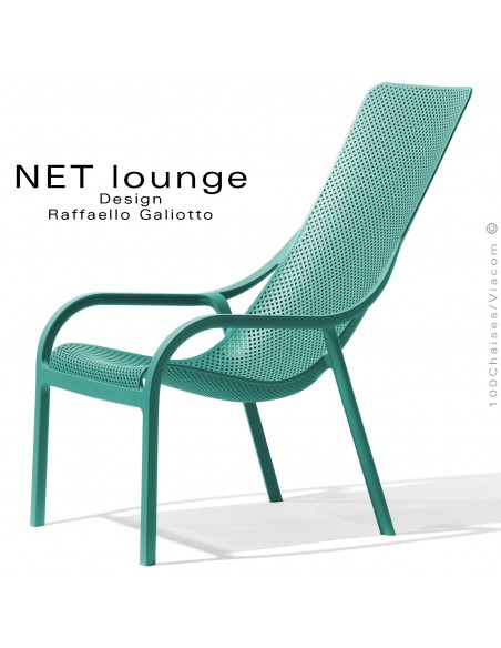 Bergère ou fauteuil lounge design NET pour extérieur, piscine, bord de mer, structure plastique assise micro-perforé couleur.