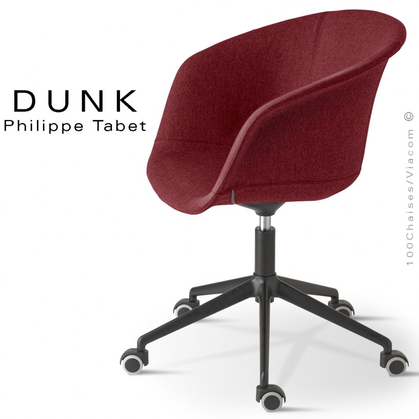 Fauteuil de bureau DUNK, piétement aluminium peint ou brillant avec roulettes, assise pivotante habillage tissu.