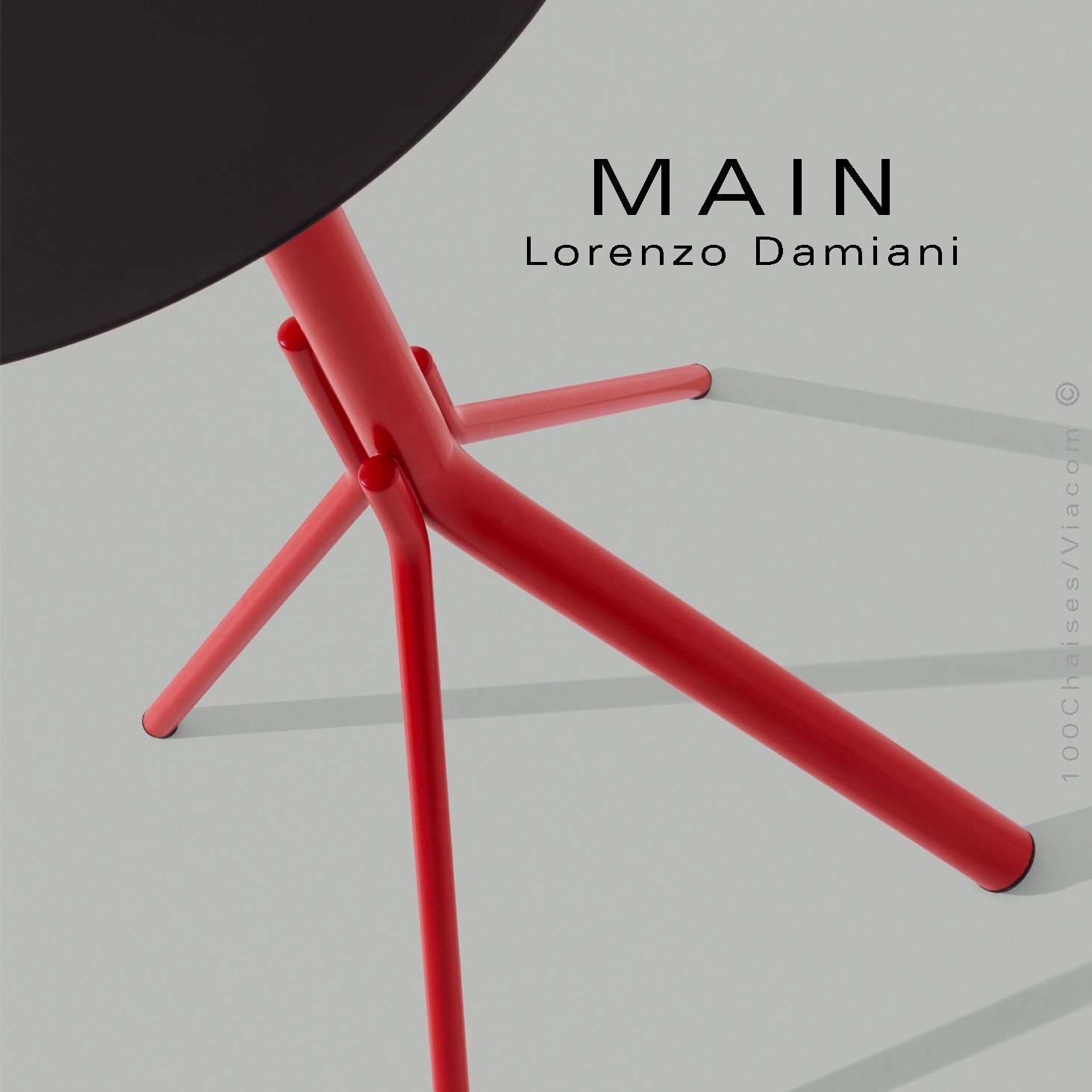 Tabouret fantaisie multi-usage MAIN, structure et piétement 4 branches acier peint, avec repose pieds circulaire. Finition peinture au choix suivant gamme fabricant au choix (voir palette peinture). Avec tampons plastique de protection des sols. Assise pivotante à 360°, type galette en bois massif de Frêne, légèrement creusé en sont milieu, pour un confort optimal. Finition assise vernis Châtaignier, brun, teinté noir (autre suivant palette vernis fabricant) avec élévation sur vérin à gaz pour une assise de 65 à 75 cm.