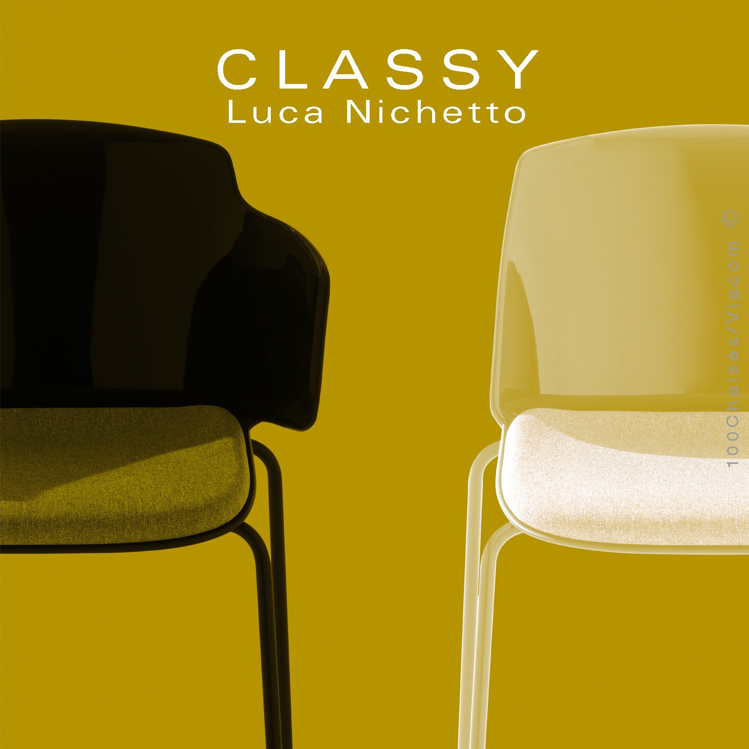 «Grâce à une attention particulière aux détails et à un design raffiné, la collection Classy trouve un équilibre naturel entre fonctionnalité et élégance. Chaise, fauteuil, tabouret, tous ces éléments trouvent leur marque distinctive dans la coque, dont la force semble délicatement modelée dans un pli central. La combinaison des différents matériaux pour le siège, opaque en dessous, brillant au-dessus et vice versa pour le dossier enveloppant, crée un jeu de contrastes et augmente l'effet de démarcation entre les deux pièces. La collection Classy offre une variété de solutions pour différents environnements, garantissant un confort et une touche de préciosité». Luca Nichetto