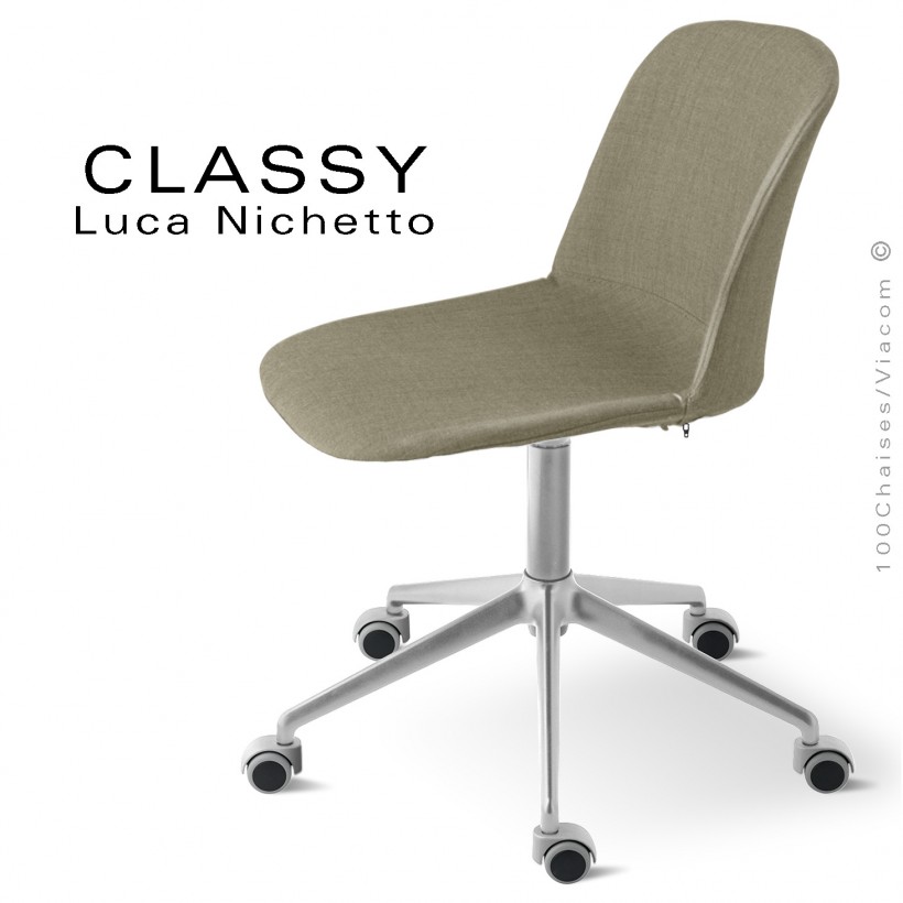 Chaise bureau design confort CLASSY, piétement aluminium et roulettes, assise pivotante garnis de mousse habillage tissu tissé.
