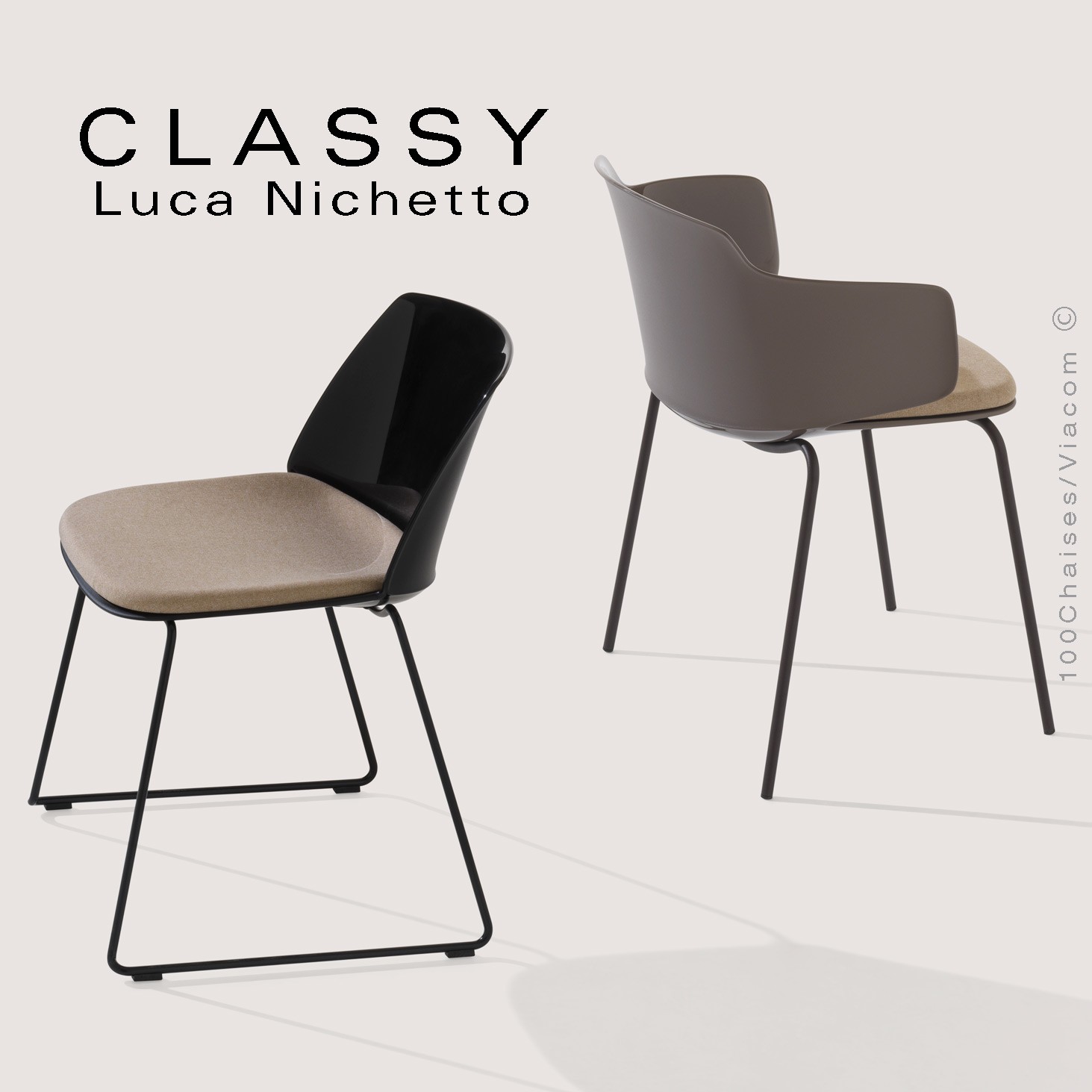 «Grâce à une attention particulière aux détails et à un design raffiné, la collection Classy trouve un équilibre naturel entre fonctionnalité et élégance. Chaise, fauteuil, tabouret, tous ces éléments trouvent leur marque distinctive dans la coque, dont la force semble délicatement modelée dans un pli central. La combinaison des différents matériaux pour le siège, opaque en dessous, brillant au-dessus et vice versa pour le dossier enveloppant, crée un jeu de contrastes et augmente l'effet de démarcation entre les deux pièces. La collection Classy offre une variété de solutions pour différents environnements, garantissant un confort et une touche de préciosité». Luca Nichetto