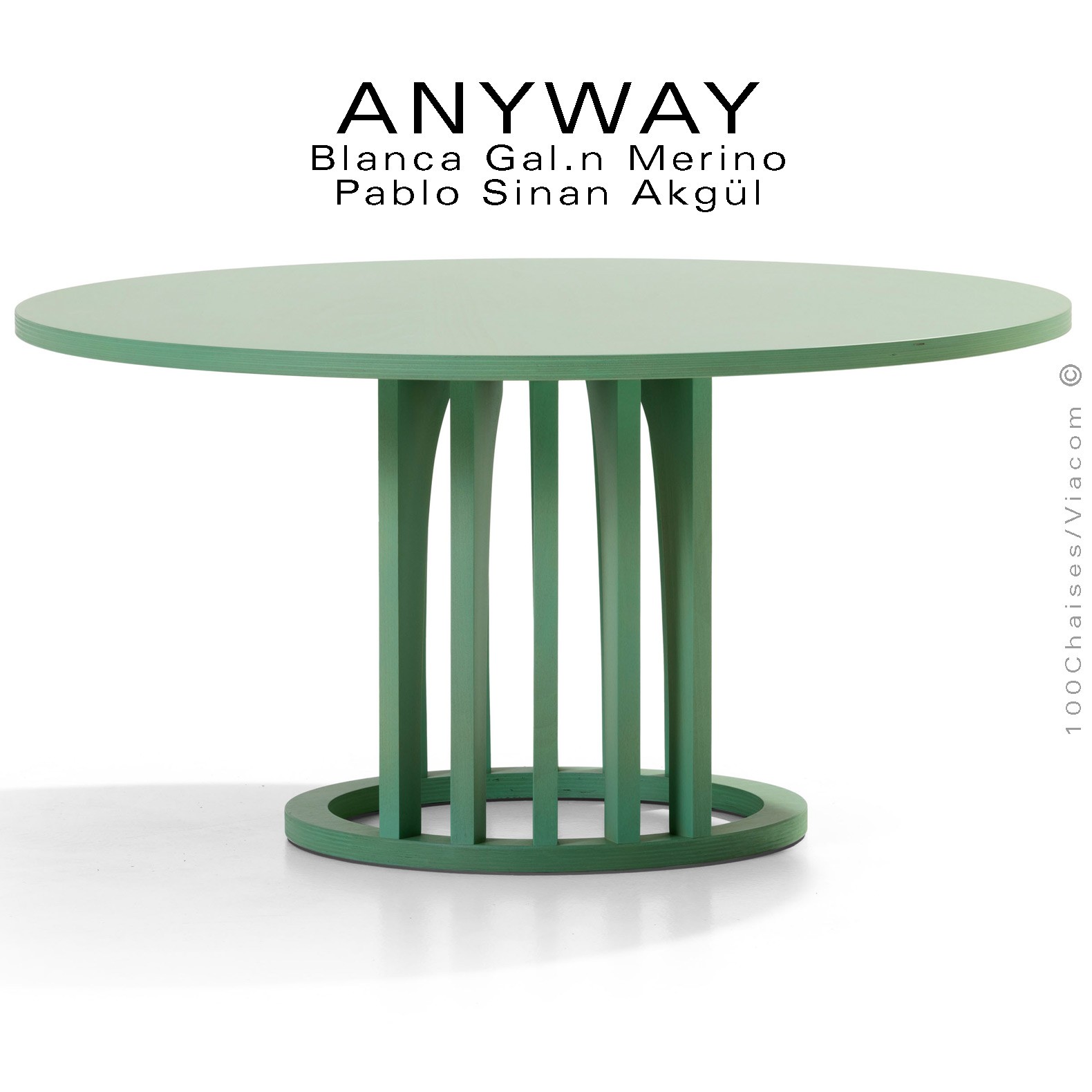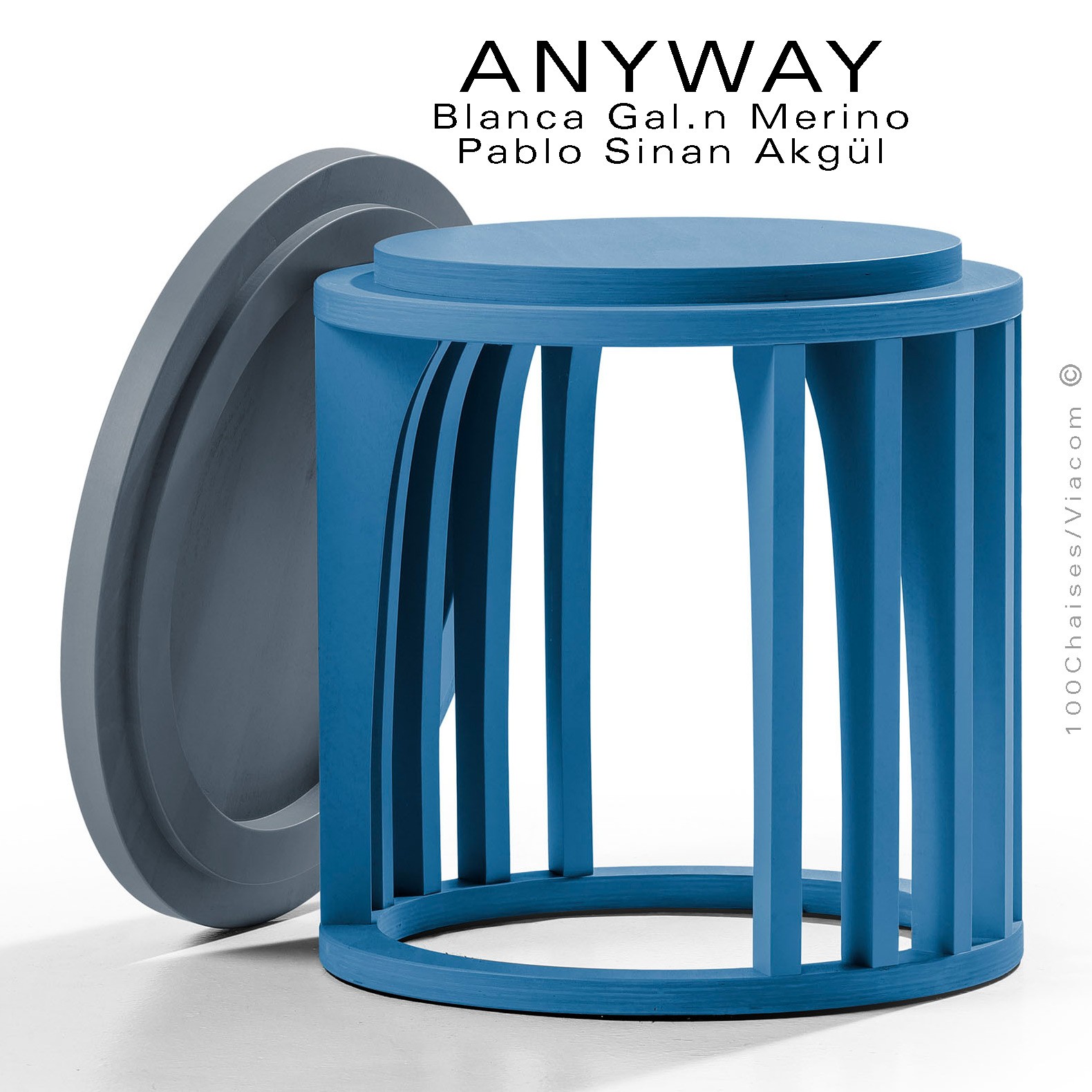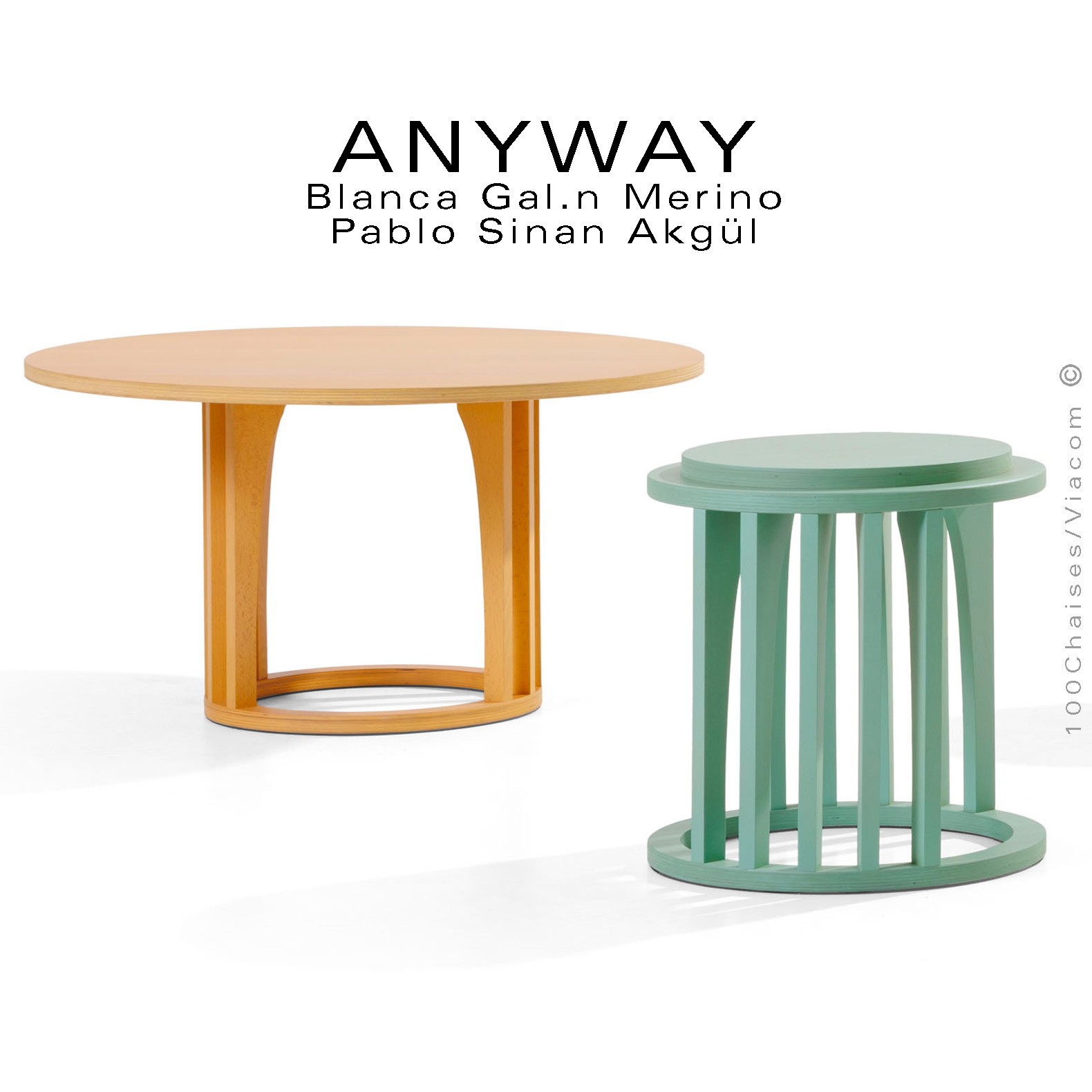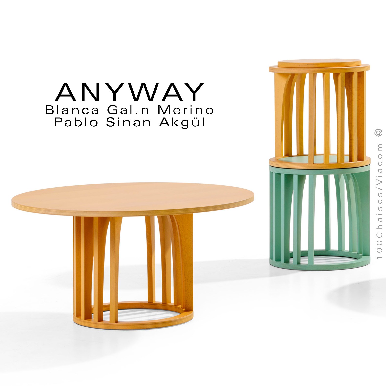 Normes européennesPetite table d'appoint ou objet déco design ANYWAY, structure jambes ou bandes verticales en bois massif de hêtre, plateau et base en contreplaqué de hêtre Ø350 mm., hauteur 250 mm., avec patin feutre pour la protection des sols. Finition standard vernis naturel ou incolore ou peint suivant gamme fabricant voir palette. Autre finition sur demande dans la gamme RAL. Mobilier empilable. Option sur demande plateau bois rond amovible, vos demandes à commandes@100chaises.fr.