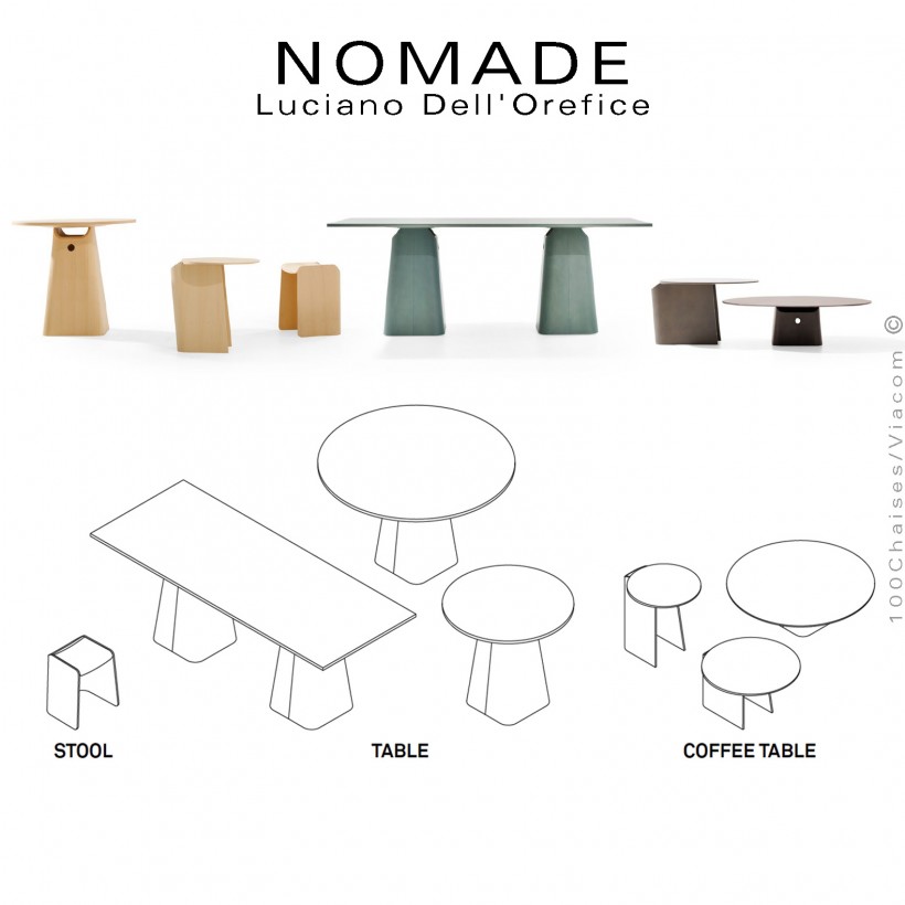 NOMADE un produit polyvalent, parfait pour les environnements domestiques et contractuels, avec une grande sensibilité au thème de la durabilité et en même temps léger et ludique. Humble et légère, la collection de tables en bois Nomade s'inspire de la culture japonaise, où l'essentiel devient naturellement agile, pour composer l'espace dans lequel se réunir.