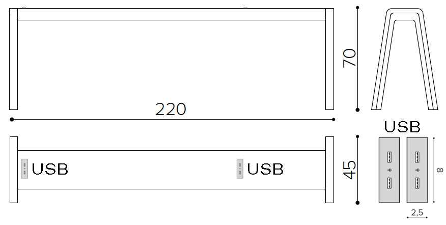 Banc assise haute en bois massif de Frêne ou de Chêne design E-QUO, assise 4 places pour table haute E-QUO, réf.: T095 ou T097, structure de l'assise poutre d'acier peint noir, recouvert de bois massif de Frêne ou Chêne. Piétement en "U" structure interne en tube d'acier peint noir, recouvert de bois massif de Frêne ou Chêne avec tampons plastique de protection des sols. Option assise 3 ou 4 coussins garnis de mousse habillage cuir synthétique gamme VALENCIA du fabricant Spradling, ignifugé NF P 92-503/M2, couleur en standard marron Terracotta 107-0035 (autre couleur sur demande à commandes@100chaises.fr). Autres options connectique ou chargement USB, deux platines 80x25 mm., qui comporte deux prises USB par platine, total 4 prises de chargement. Câble électrique de couleur noir avec porte-câble ou accroche boucle en cuire marron.
