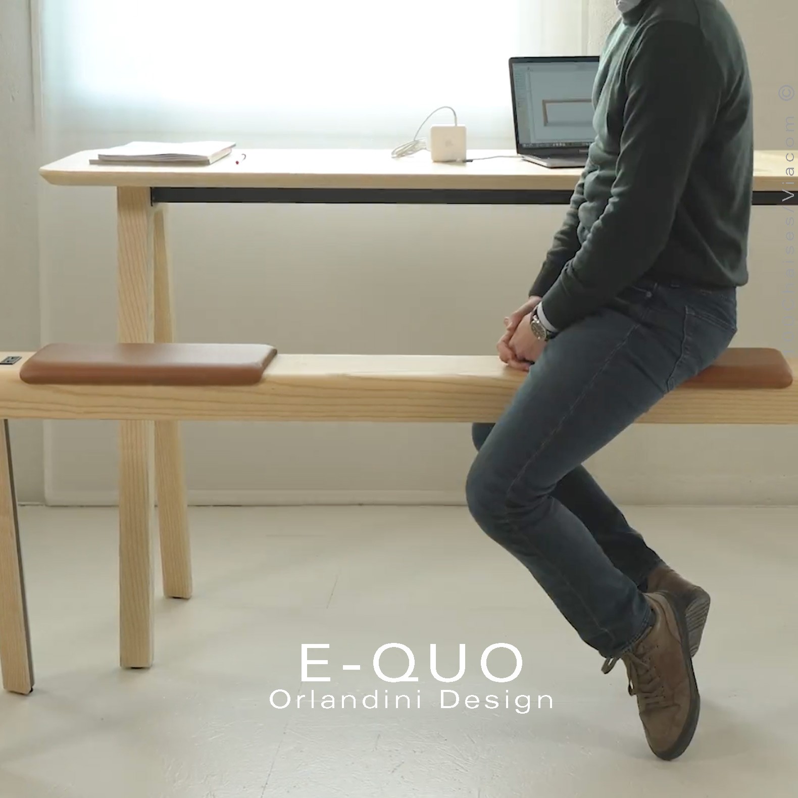 Collection table et banc bois massif de Frêne ou chêne, E-QUO, pour espace travail ou détente.
