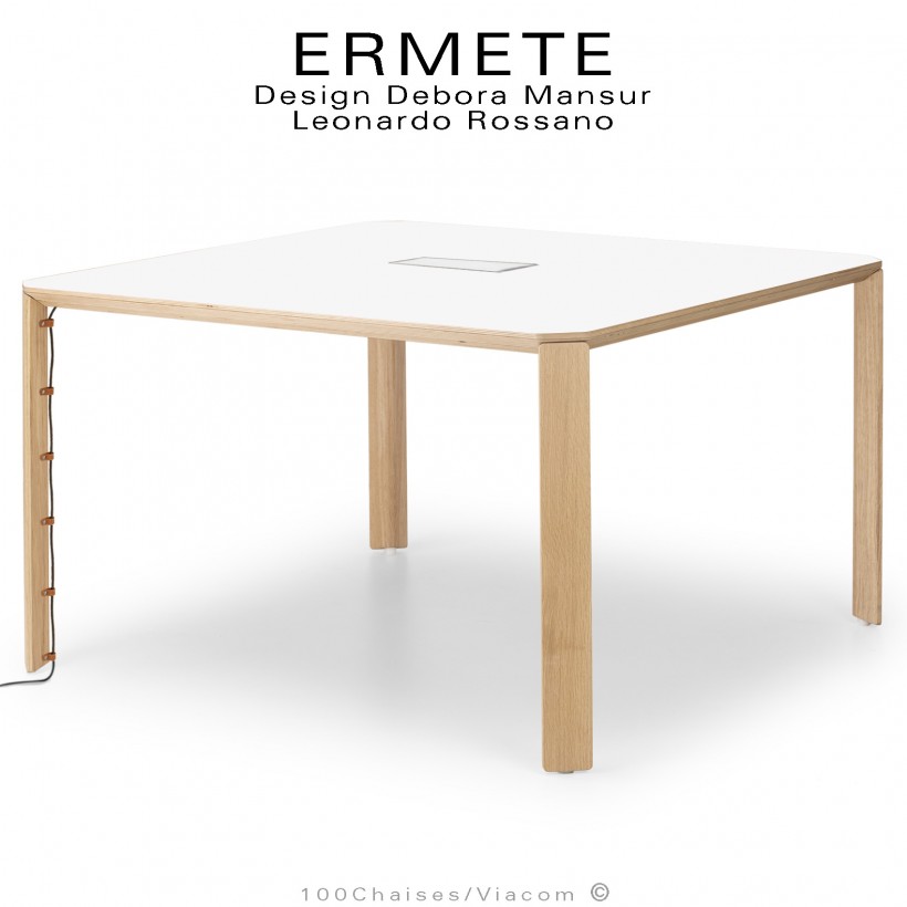 Table repas ou bureau carré ERMETE, structure 4 pieds bois de Chêne massif, plateau placage bois de Chêne ou stratifié blanc.
