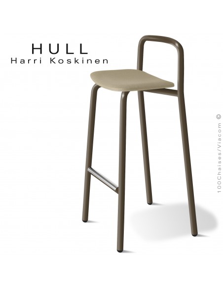 Tabouret confort et résistant pour collectivités HULL, piétement peint marron, assise mousse, habillage tissu couleur corde.