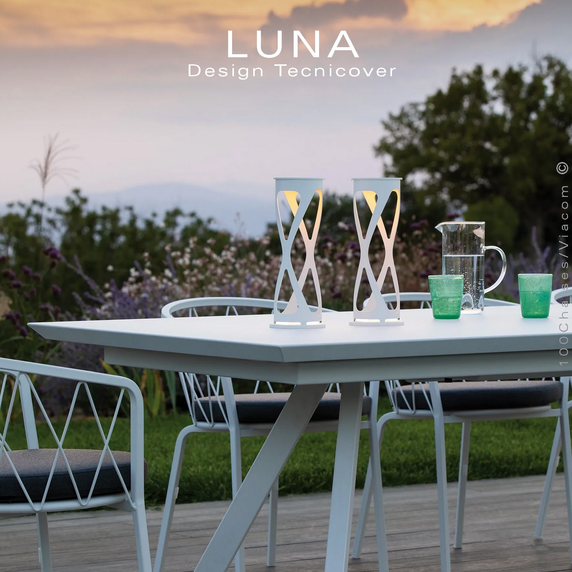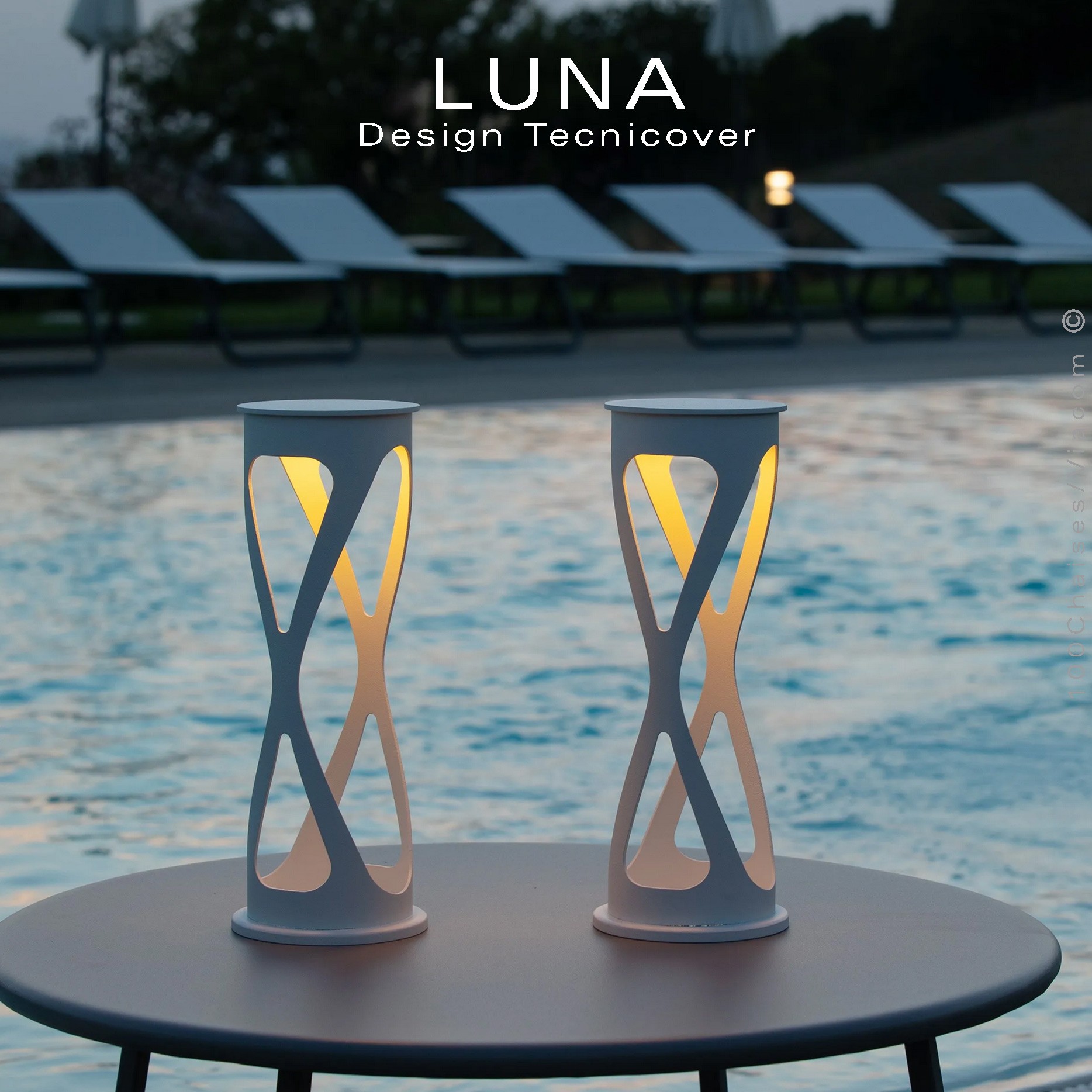 Lampe de table décorative pour vos soirées d'été LUNA, structure acier peint, éclairage LED rechargeable avec variateur tactile.