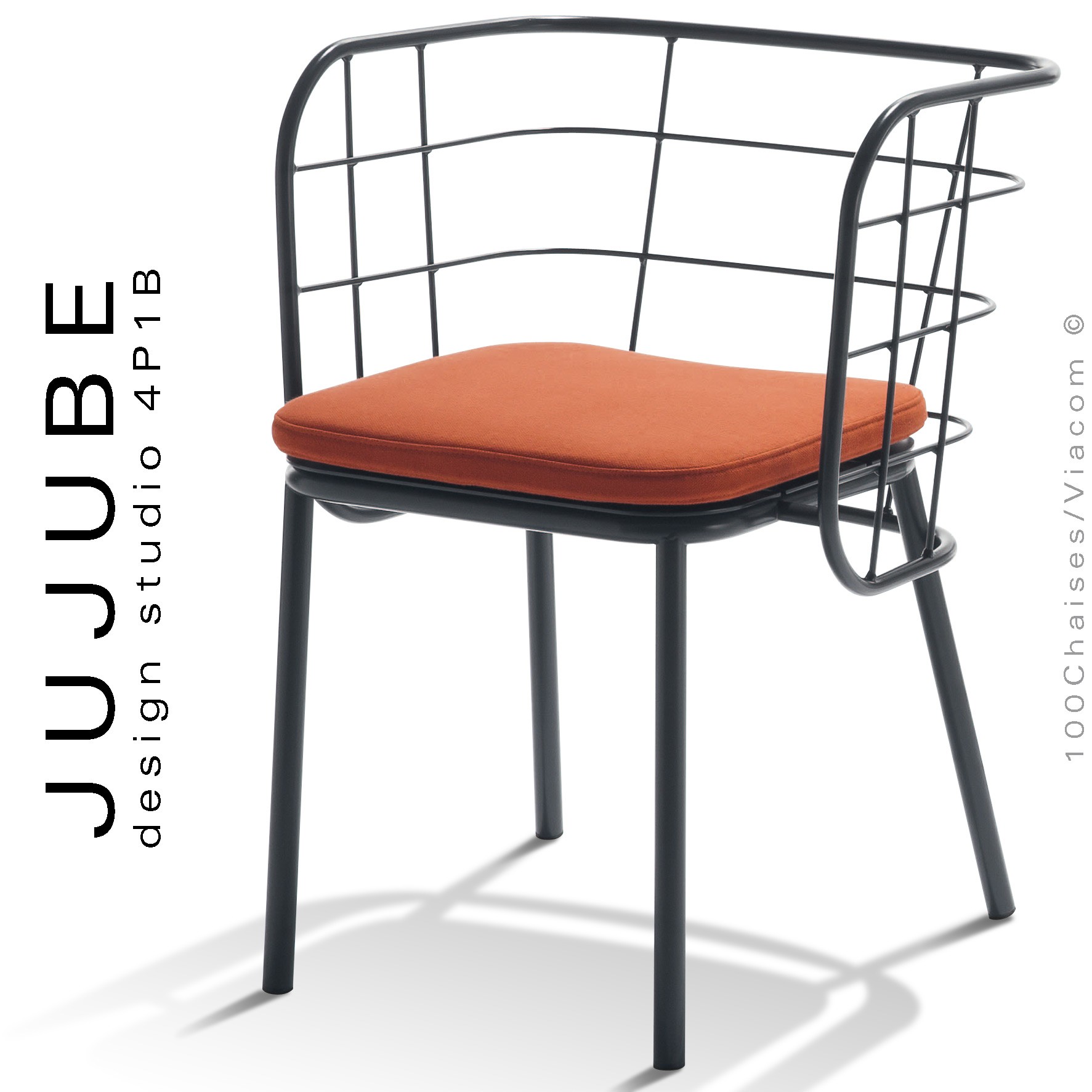 La collection JUJUBE conçue par le studio de design 4P1B, offre une gamme complète de canapés, fauteuils, chaises, tabourets de bar pour intérieur et extérieur très atypique. Le dossier en métal tubulaire identifie la totalité de la collection et reste l'élément décoratif de la gamme. Selon les versions, selon votre composition, de nombreuses variantes sont possibles avec un large choix dans la couleurs de la structure. L'assise avec coussin rembourré, ainsi que le capitonnage du dossier offre encore plus de douceur et de confort. JUJUBE est en fait un véritable système de composition d'éléments modulaires qui sont combinés entre eux pour créer différents types de sièges.