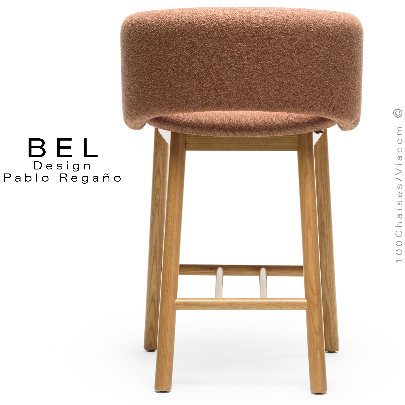Normes européennesTabouret de cuisine confortable et design BEL, pour café, hôtel, bars, CHR et milieu domestique, chambre, bureau, cuisine ou autre. Structure et piétement type luge ou traîneau en rond d'acier Ø10 mm., avec repose pieds et tampons plastique de protection des sols. Finition piétement peinture blanche, noire ou terracotta. Assise et dossier garnis de mousse polyuréthane, habillage tissu tissé gamme Auckland du fabricant VESCOM, un tissu d'ameublement bouclé avec une grille bicolore, ludique et non directionnelle. Composition : 76% polyester recyclé FR. / 24% polyester FR. Ignifuge : NF D 60-013 - AM18 / NF P 92503-507 - M1. Autre tissu, velours, 100% laine ou cuir synthétique disponible voir palette sous forme d'image. Vos demandes à : commandes@100chaises.fr
