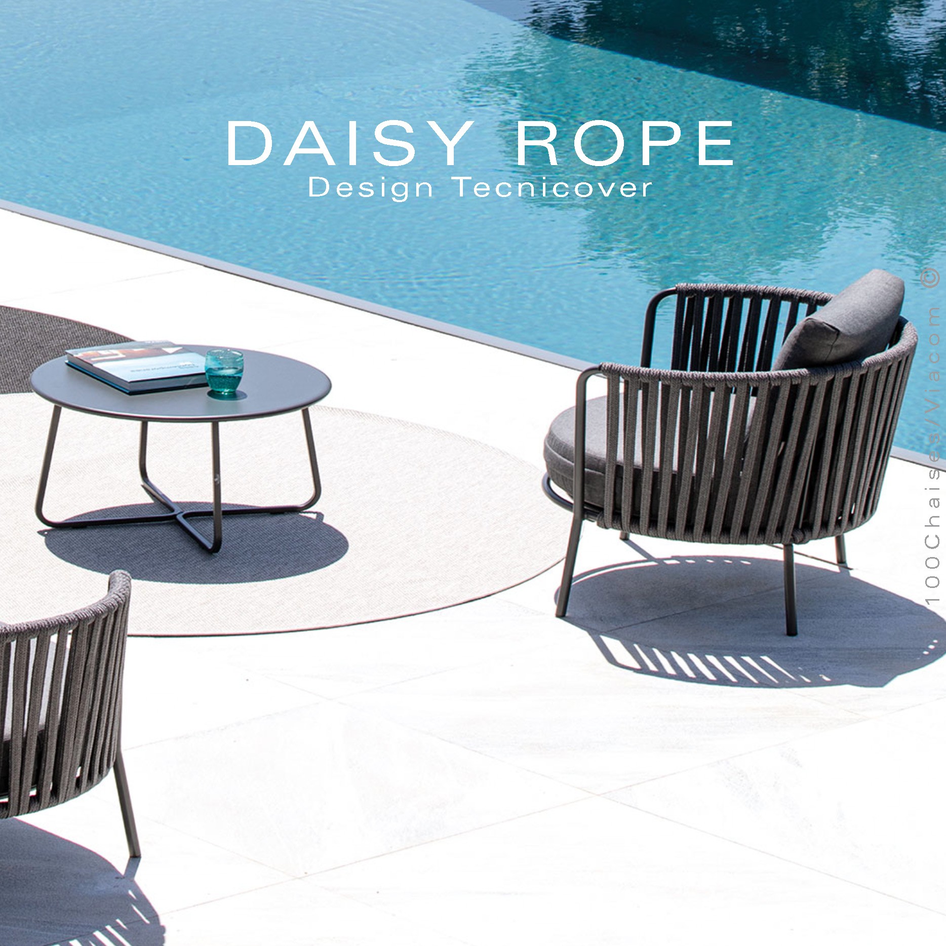 Kit ou collection de trois petites tables basses d'appoint pour salon d'extérieur DAISY, structure 3 pieds en tube d'acier galvanisé Ø30 mm., avec tampons plastique de protection des sols, plateau rond Ø400 mm., chant arrondi. Trois hauteurs 400, 450 et 500 mm. Finition peinture époxy au choix voir gamme fabricant (image) - Lot de 3 pièces.