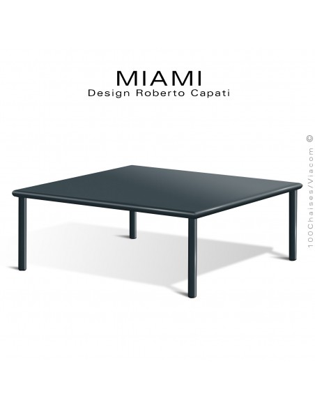 Table basse carré d'appoint design MIAMI, pour extérieur, structure acier galvanisé finition peint anthracite.