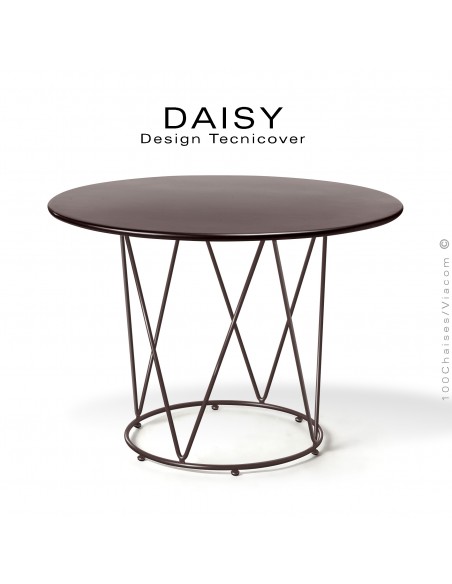 Table café ou d'appoint design DAISY, pour extérieur, structure acier galvanisé finition peint bronze, plateau rond Ø90 cm.